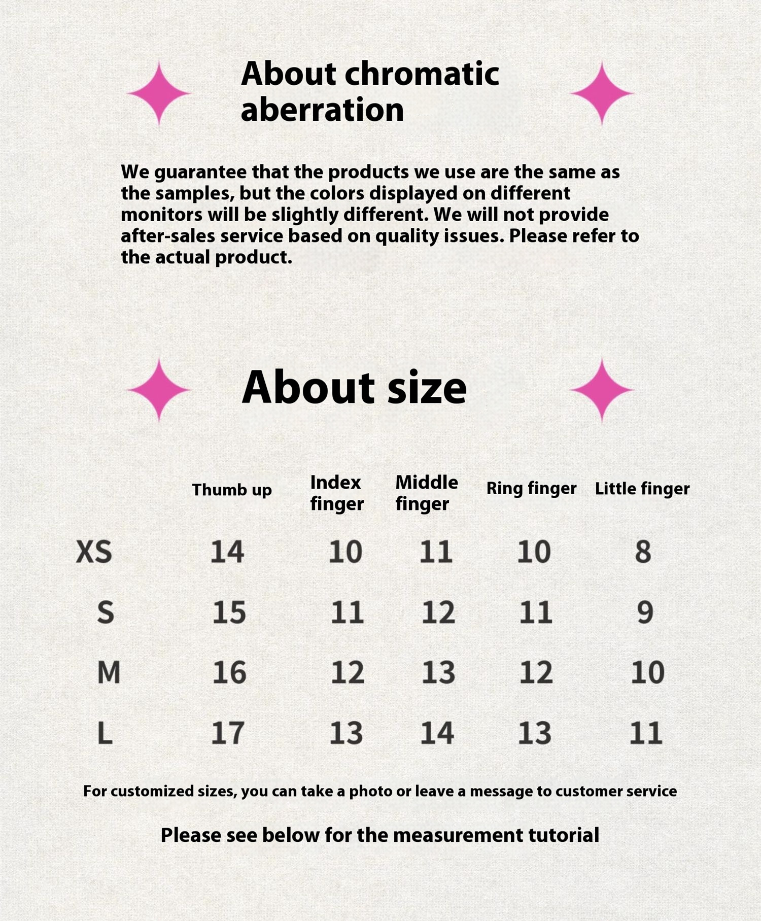 Color classification: xs14 10 11 10 8,s 15 11 12 11 9,m16 12 13 12 10,L17 13 14 13 11,