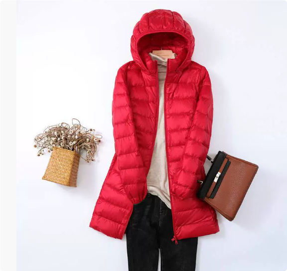 Down Jacket Women's Mid-length Hooded Lightweight Warm Detachable Hat