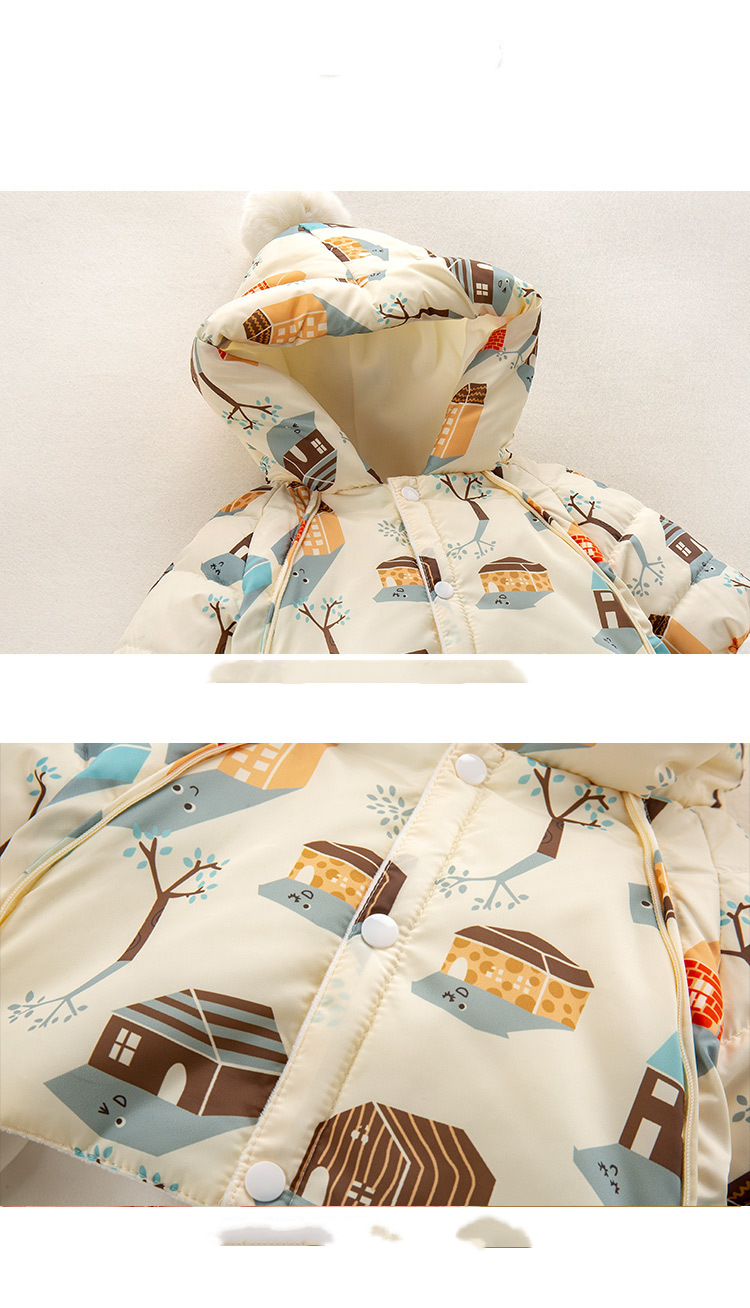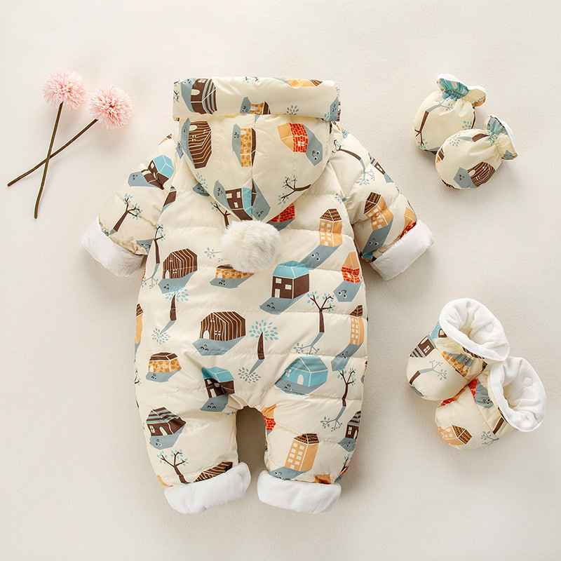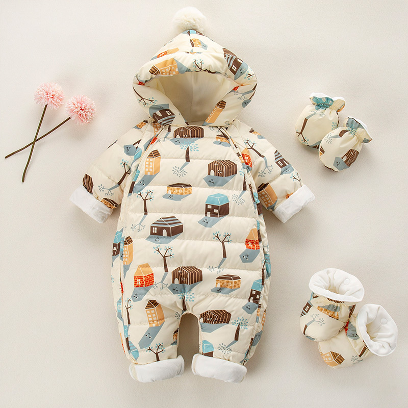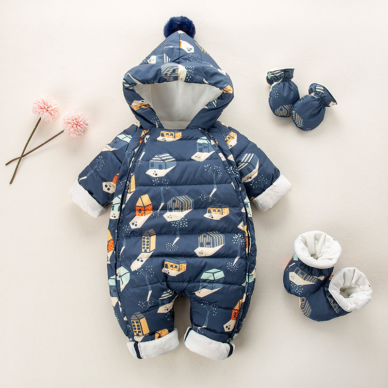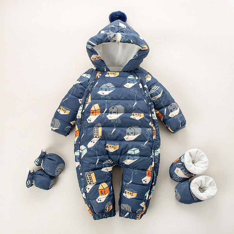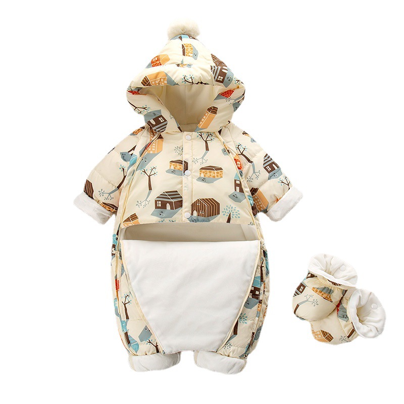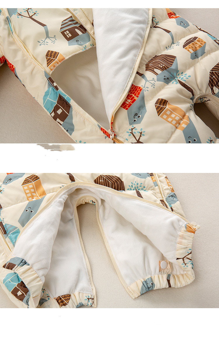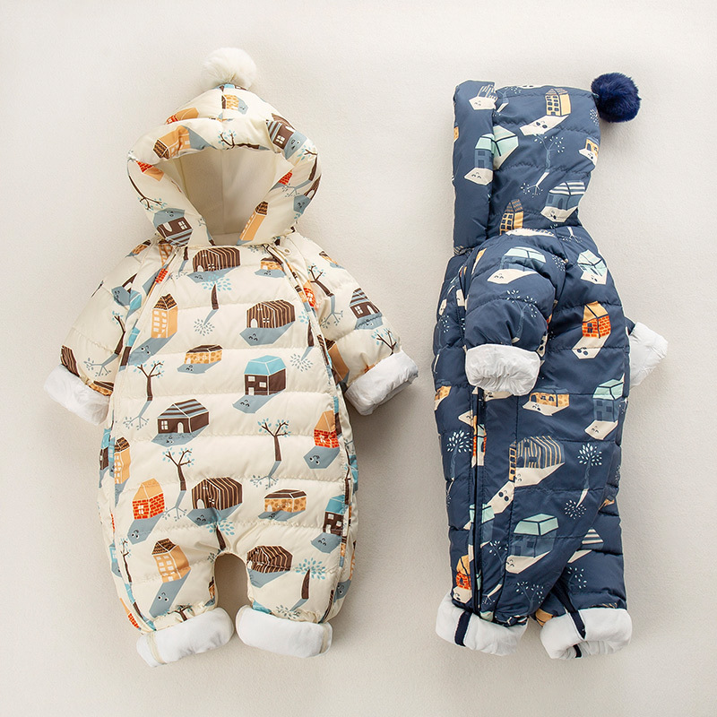 Color: Off-white down crawling clothing, navy blue down crawling clothing