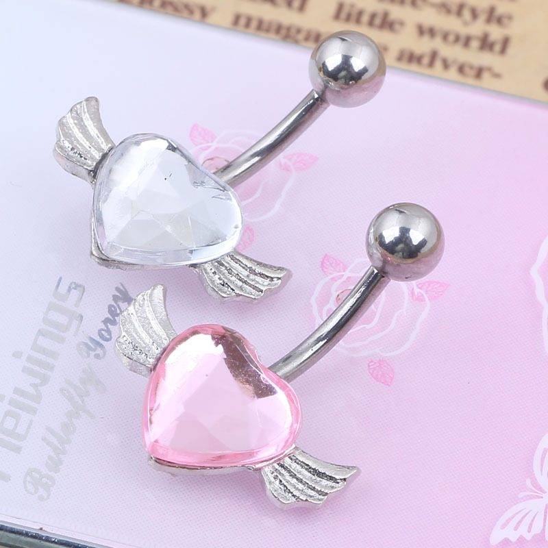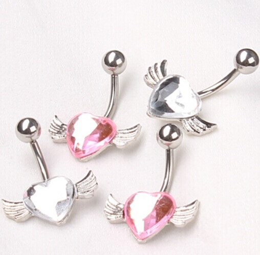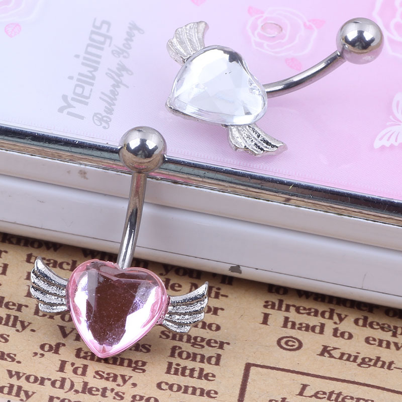 Download main imagesDownload description images2015 New Free Shipping Love Heart Belly Ring Gem Angel Wing Belly Button Navel Rings Body Piercing jewelry
