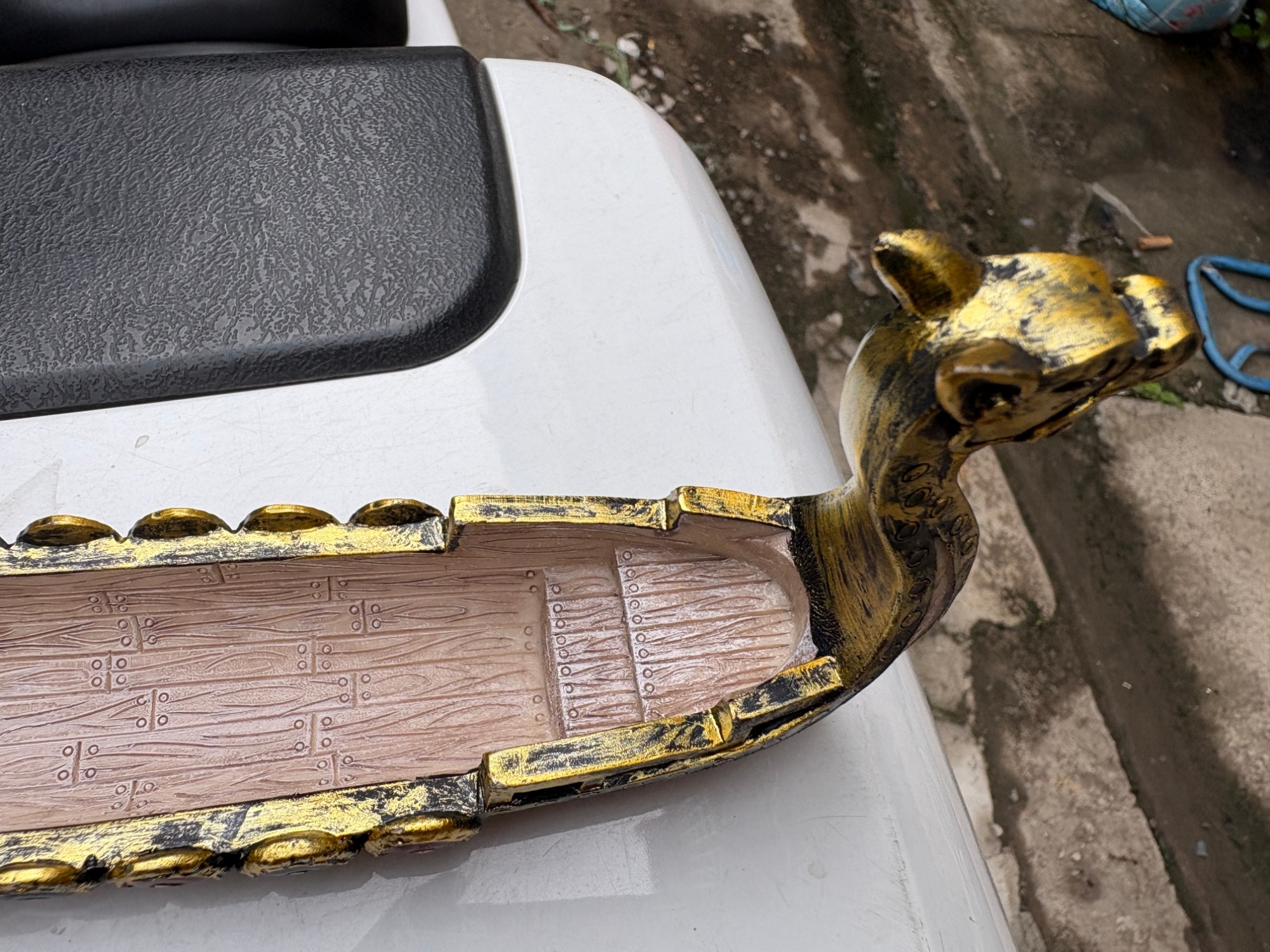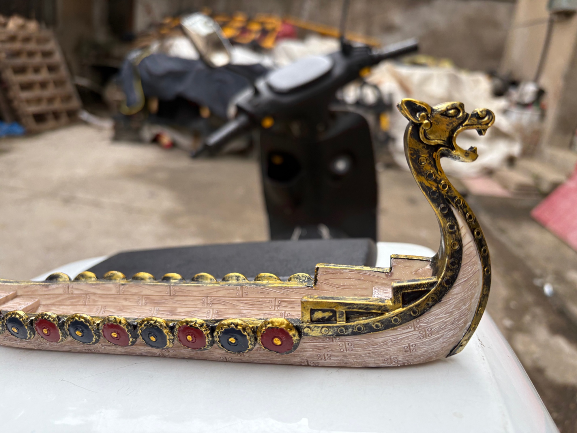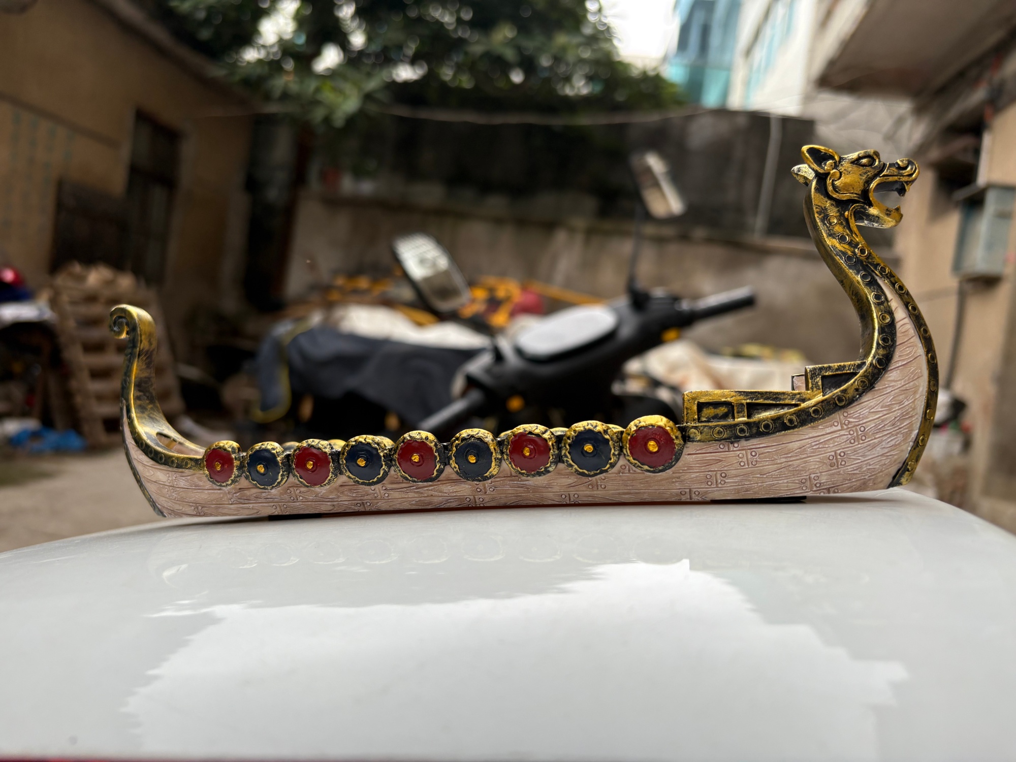This viking dragon boat incense stick holder is built to last, with high quality resin.