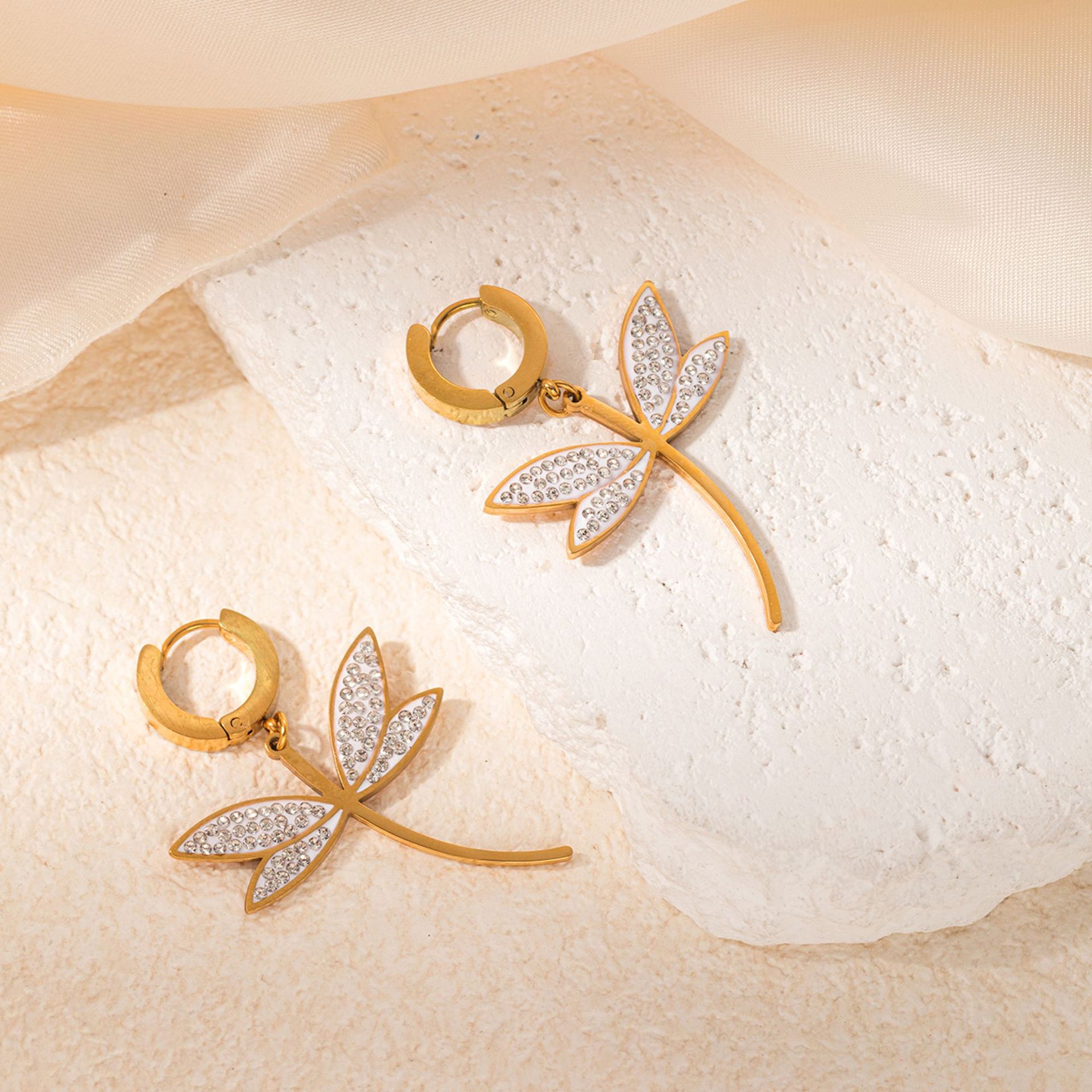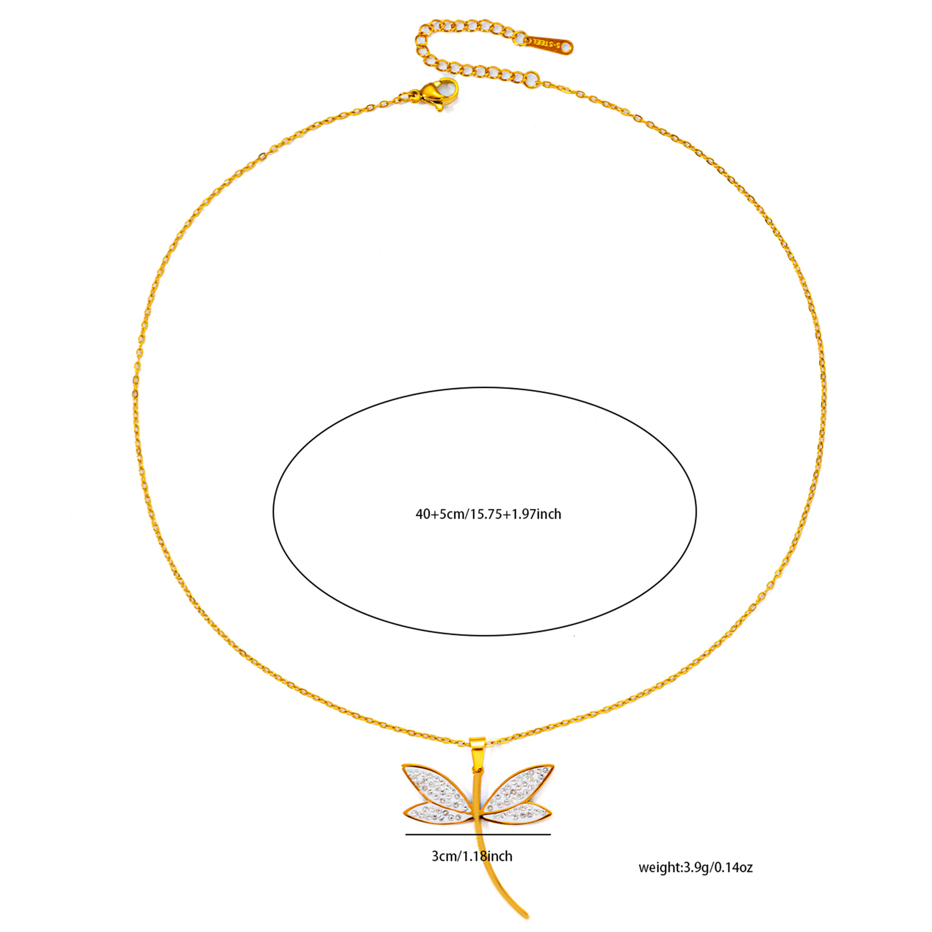 Color: titanium steel zirconium surface dragonfly necklace, titanium Steel Dragonfly zirconium surface earrings