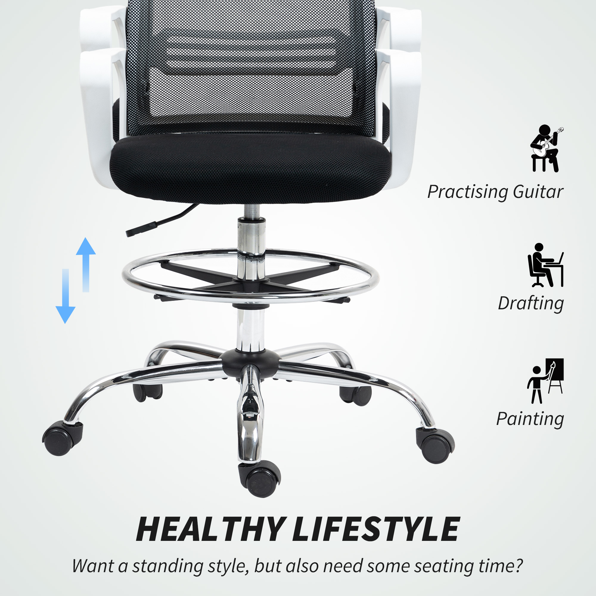 Discover the comfort of the Draughtsman Chair, featuring an adjustable seat height for tailored positioning. This high office chair includes a foot ring for added support and a breathable mesh cover with lumbar support to keep you cool and comfortable. Suitable as a perching stool or workshop stool, it's the smart choice for any workspace.