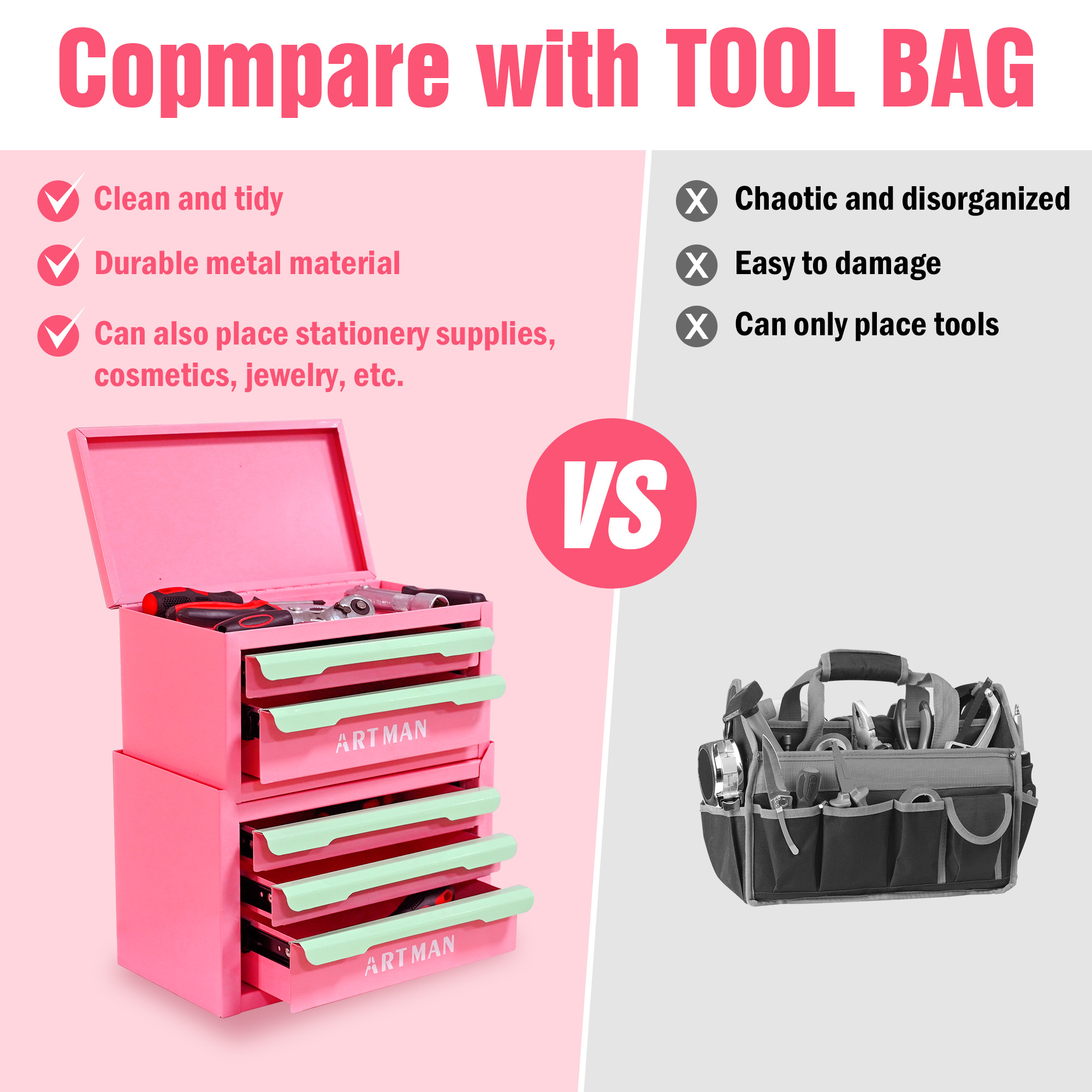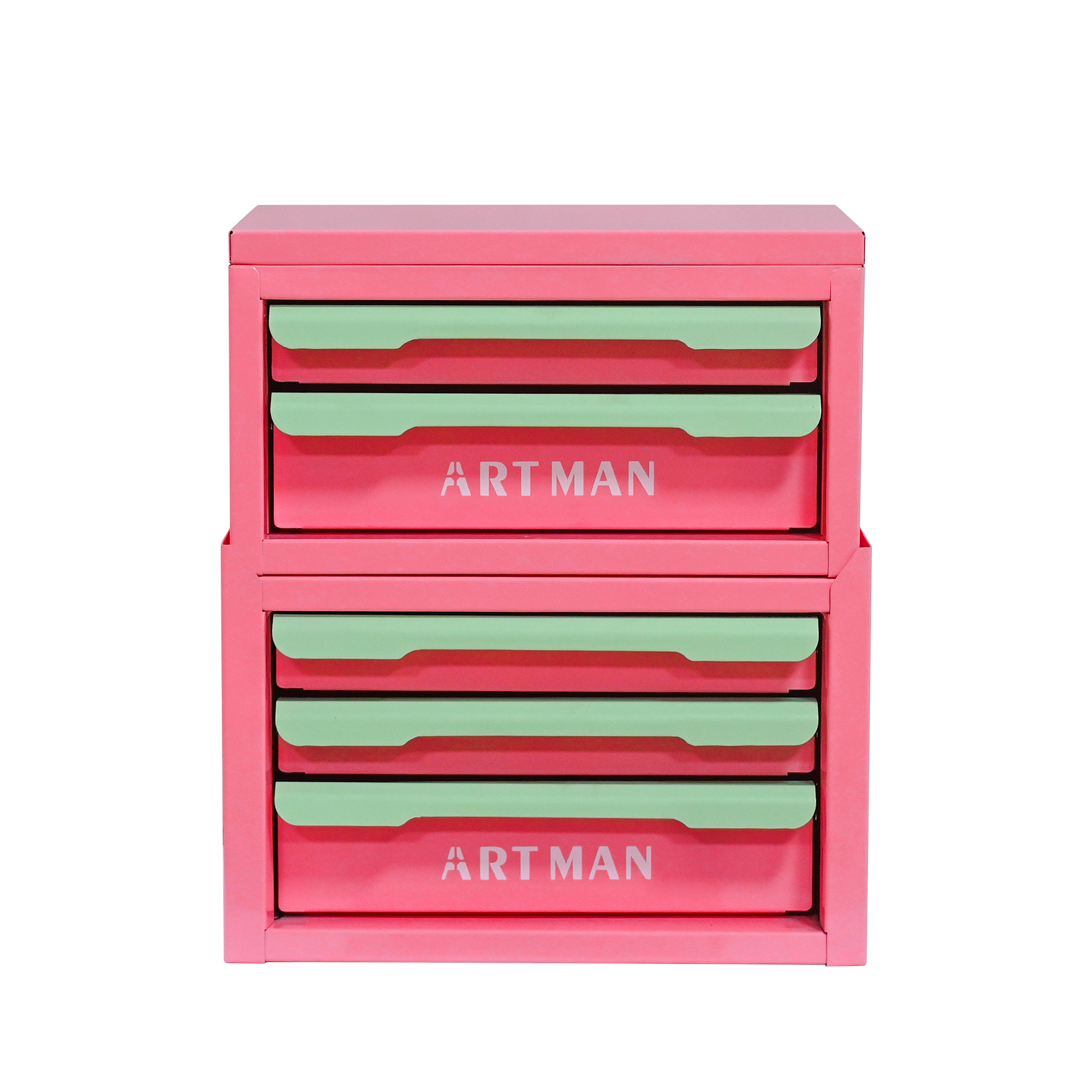 Product Name:Drawer-style desktop storage box, office workstation organizing magic tool, desk stationery storage rack, cosmetic storage cabinet--{Pink-green color, 2+3 layers}