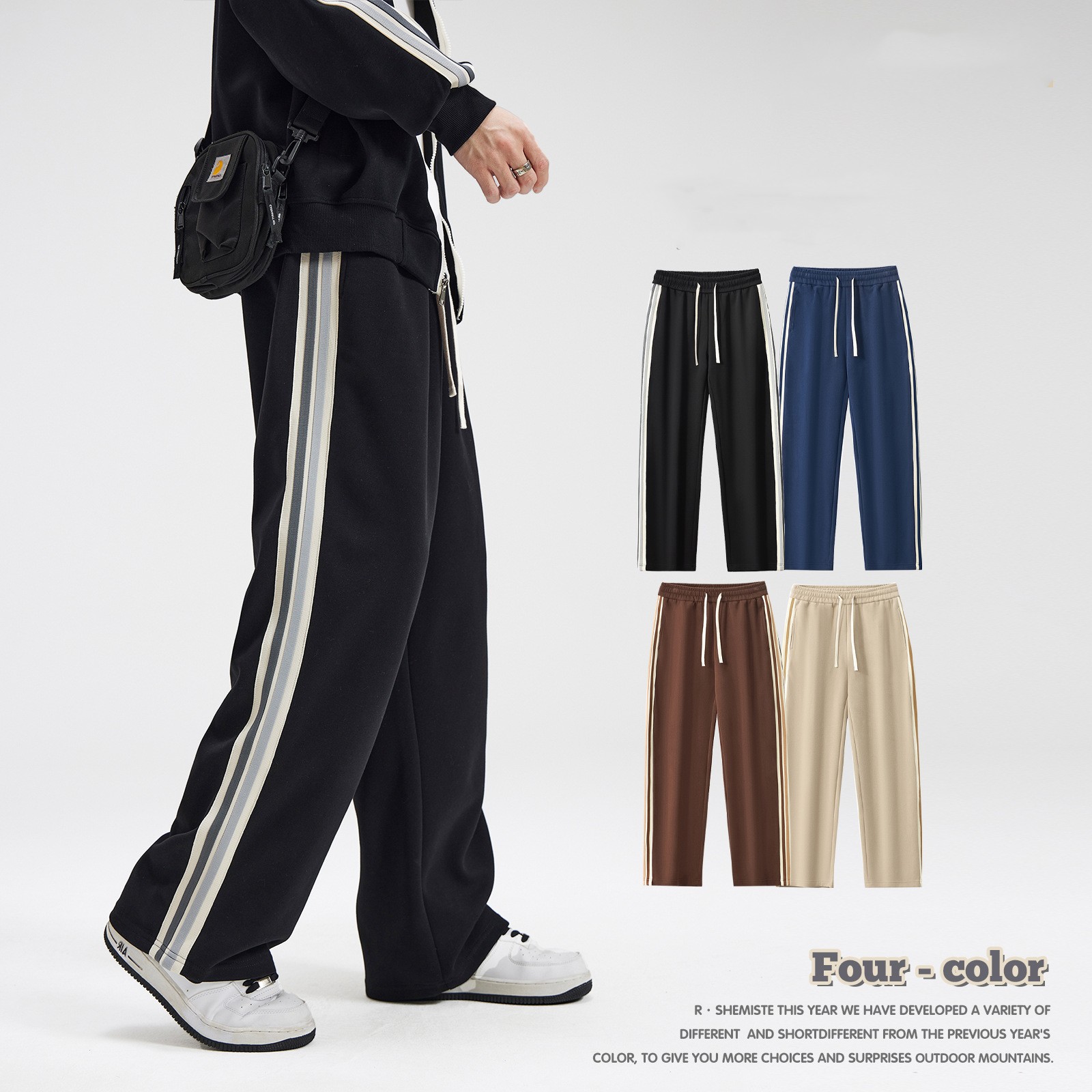 Drawstring Leisure Straight-leg Wide-leg Pants Male