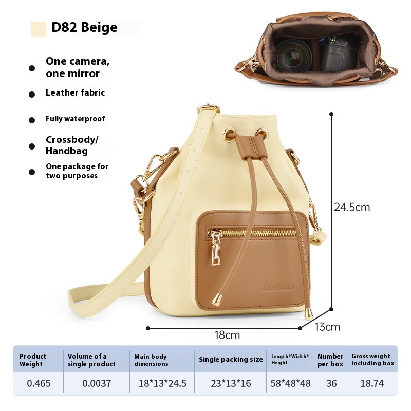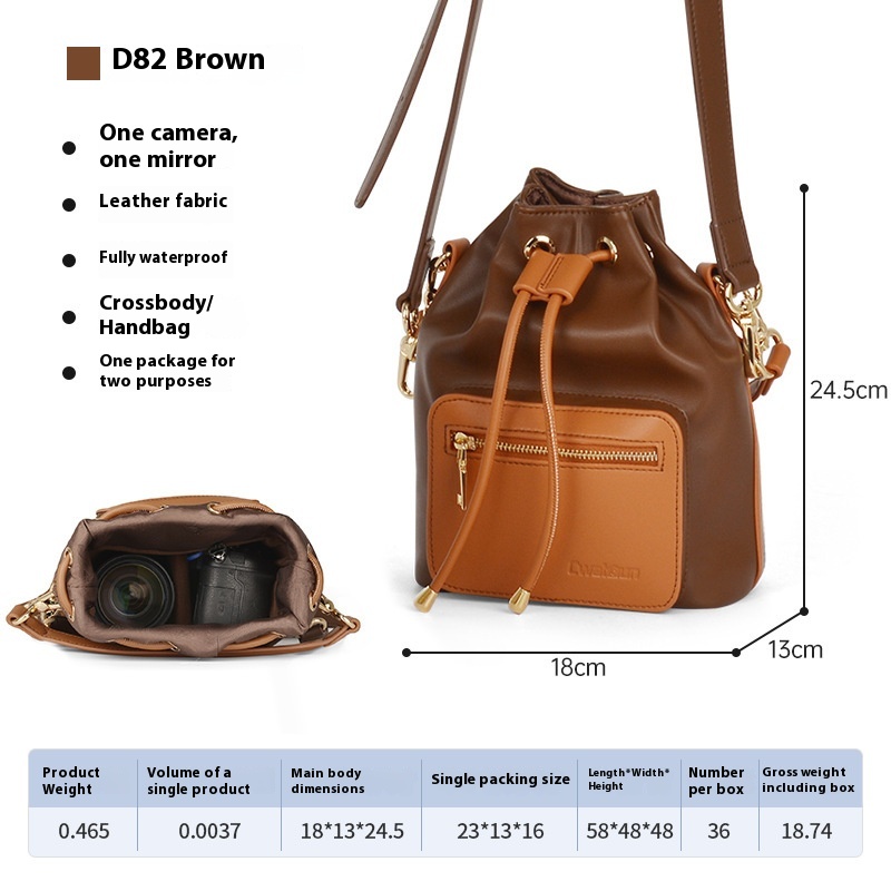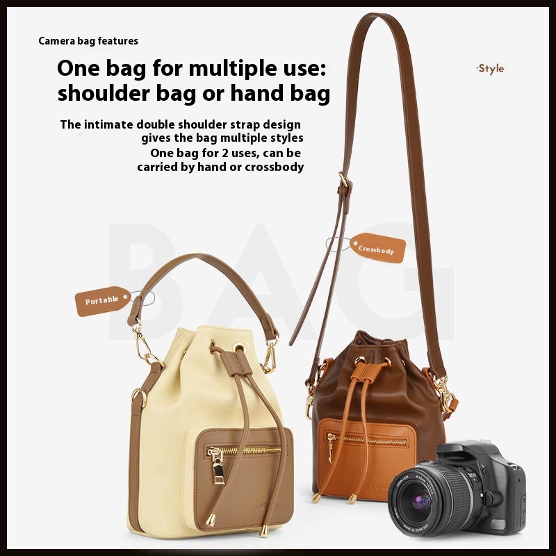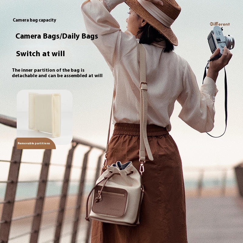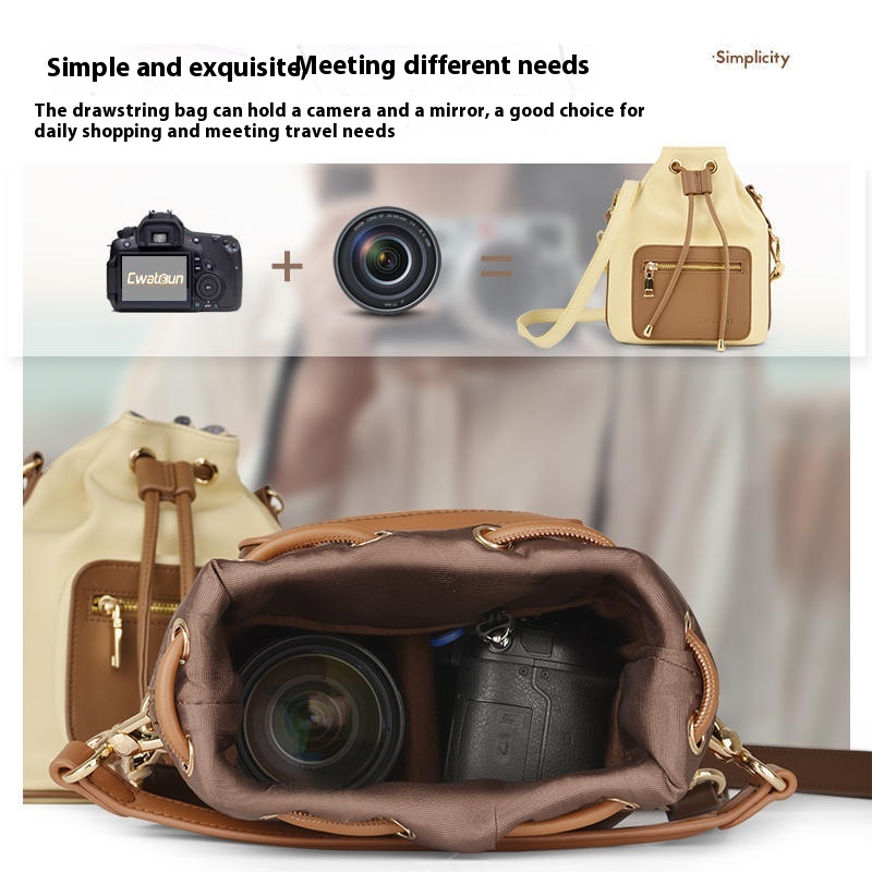 Color: beige drawstring camera bag (1 Machine 1 mirror removable partition preferred fabric), brown drawstring camera bag (1 Machine 1 mirror removable partition preferred fabric)