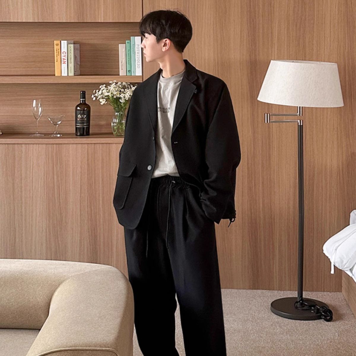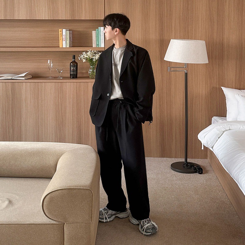 Color: black top, black pants, gray top, gray trousers
