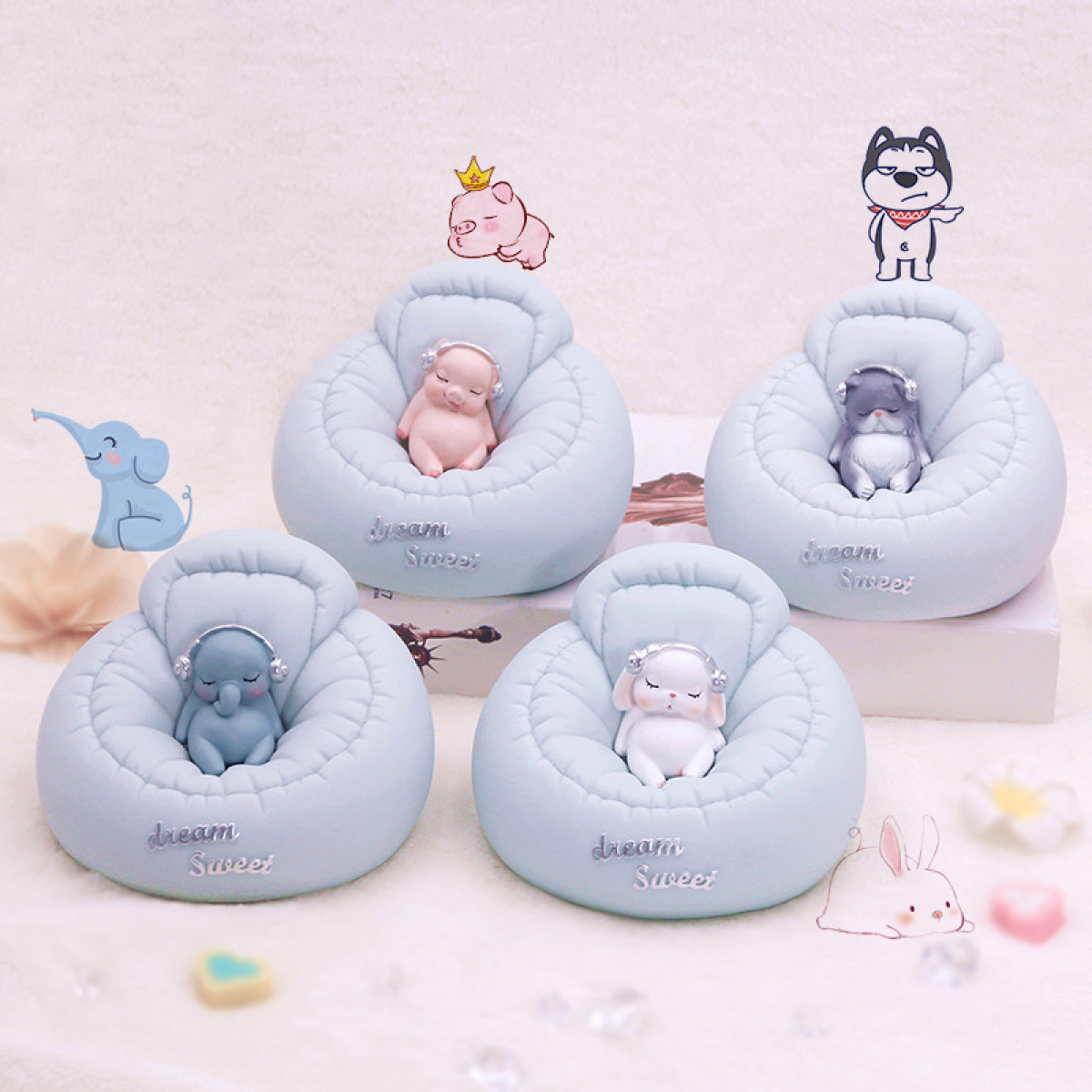 Color: lazy cat, pink pig, little rabbit, blue elephant