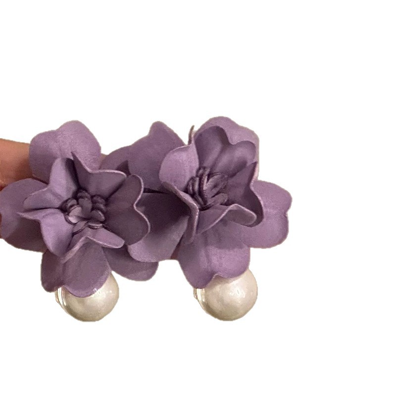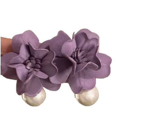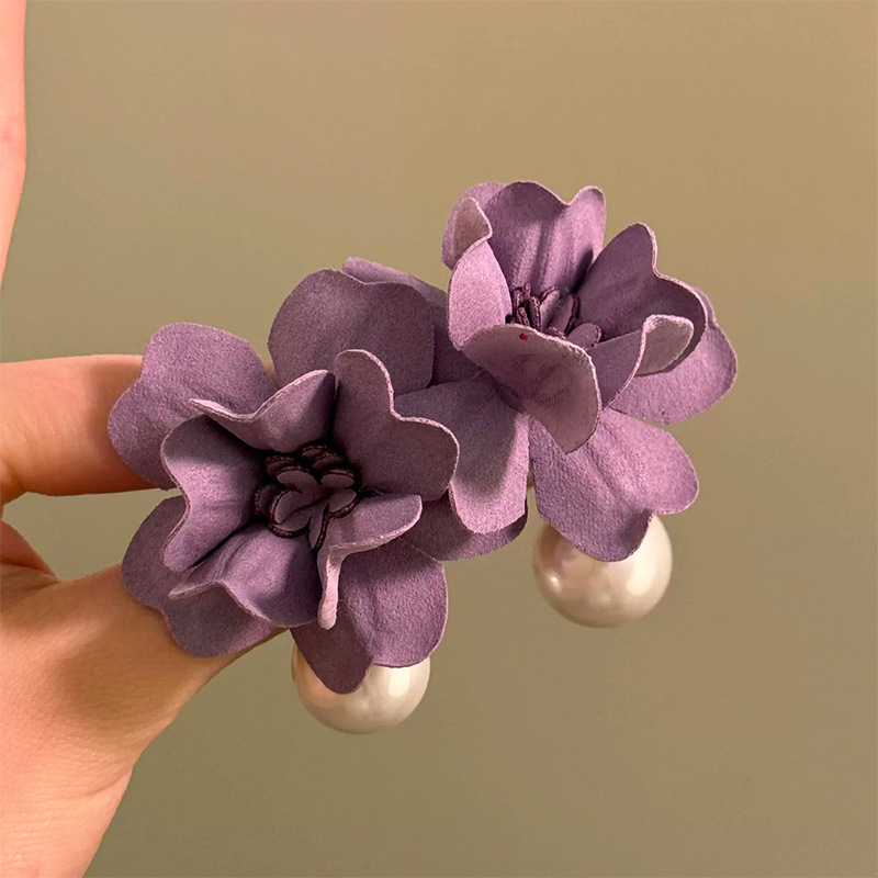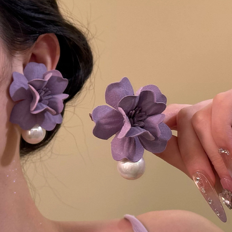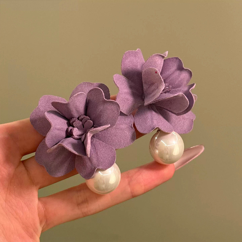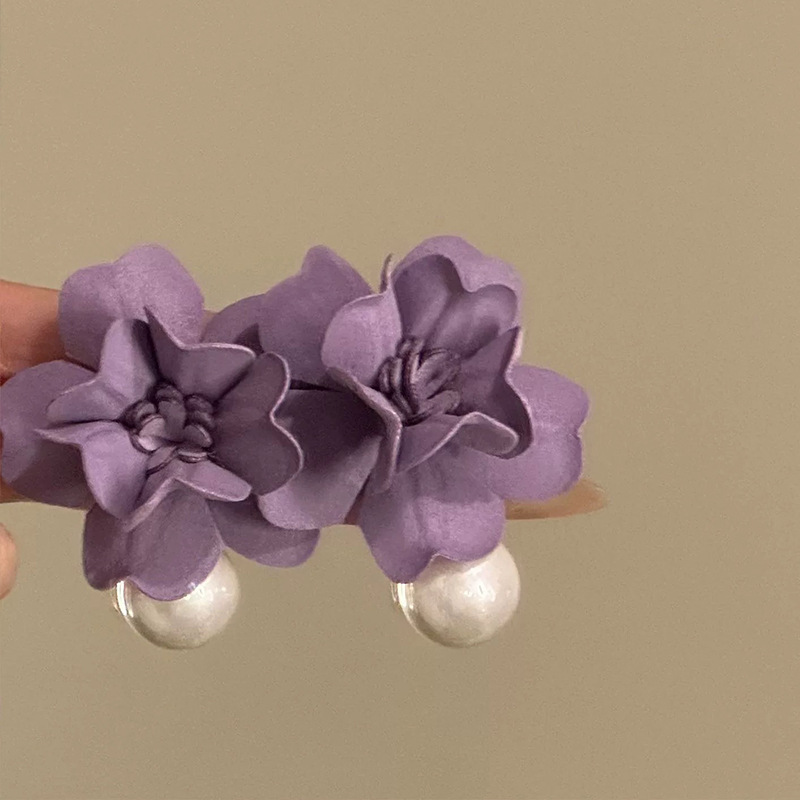 Color: Retro Sweet Purple Flower Pendant Pearl Stud Earrings
