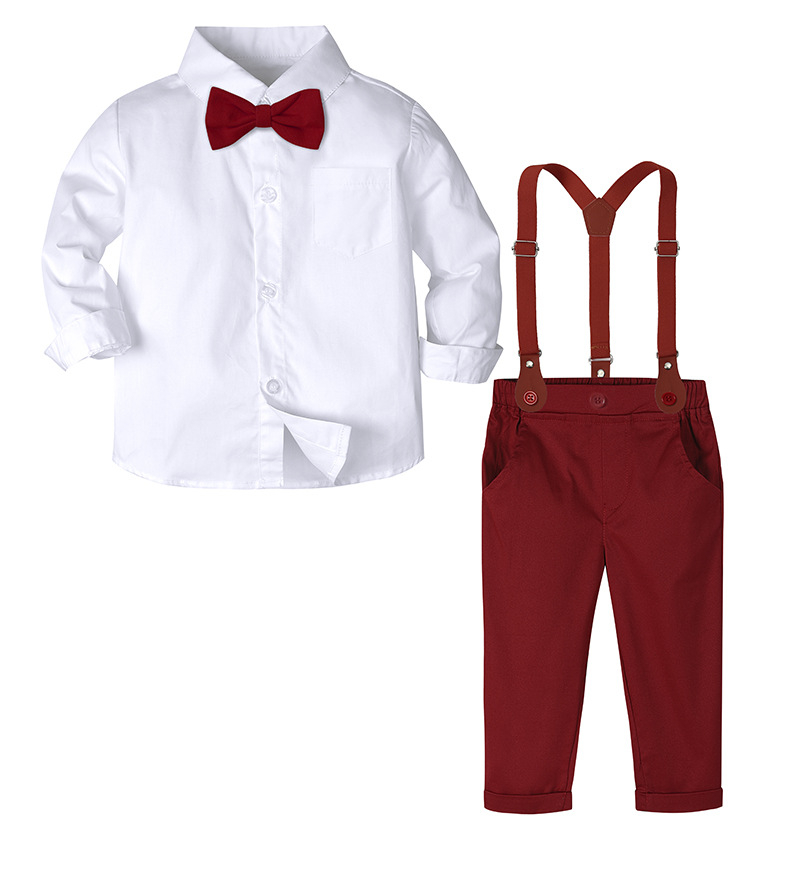 Color; 1 color: white bow tie white shirt + white overalls, 8 color bow tie white shirt + gray overalls, 3 color bow tie + white shirt + overall striped pants, 4 color bow tie + blue shirt + overall striped pants, 5 Color blue shirt +Bow Tie+Overalls, 6-color shirt and tie four-piece suit, 7-color red tie, blue shirt, burgundy overalls, 8-color long-sleeved blue shirt, four-piece suit, 9-color white shirt four-piece suit