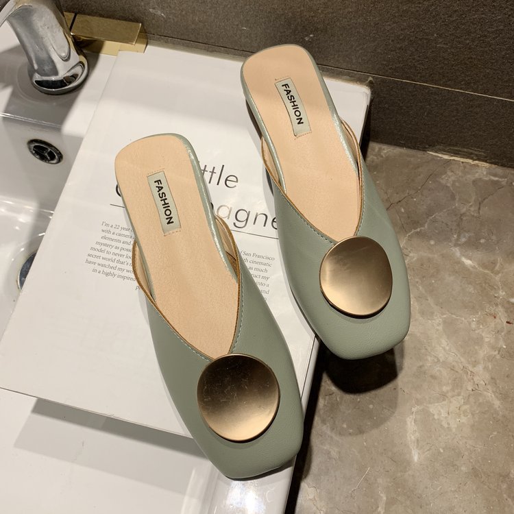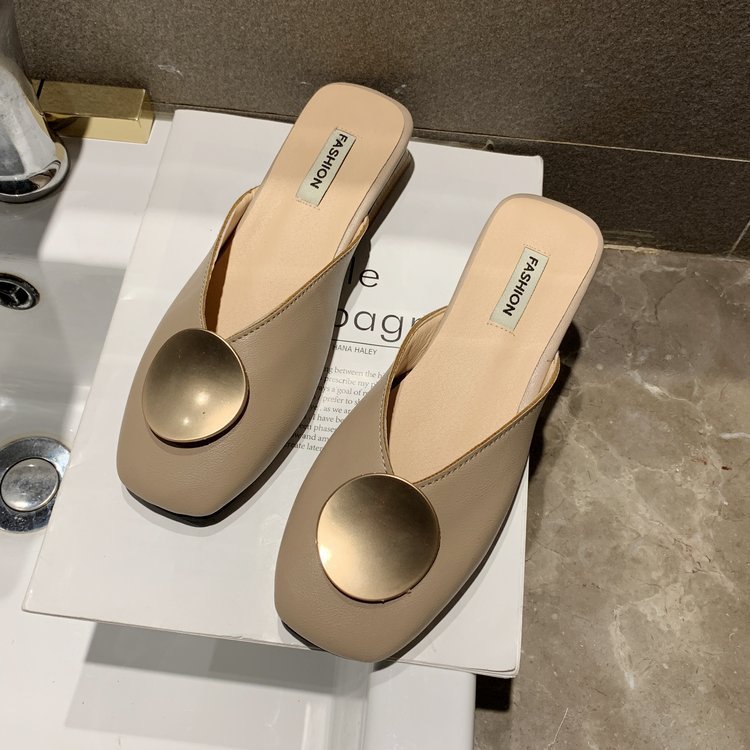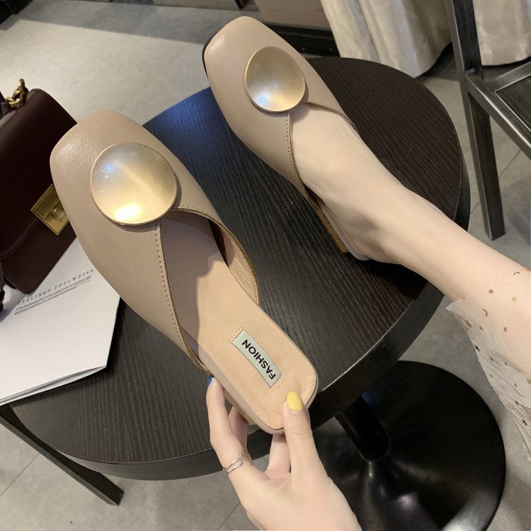 Dress Net Red Slippers Women'S Summer New Fashion Casual Baotou Half Slippers Women'S Low Heel Thick Heel Sandals Muller Shoes