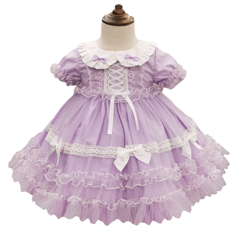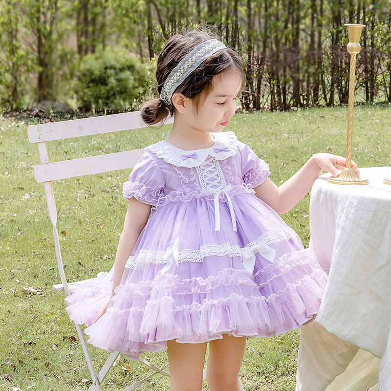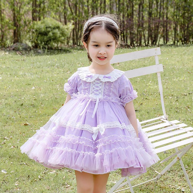 Dress Short-sleeved Fairy Dress Girls Mesh Lace Puffy Princess