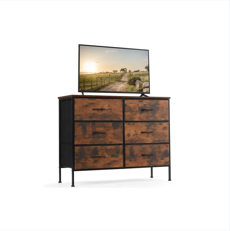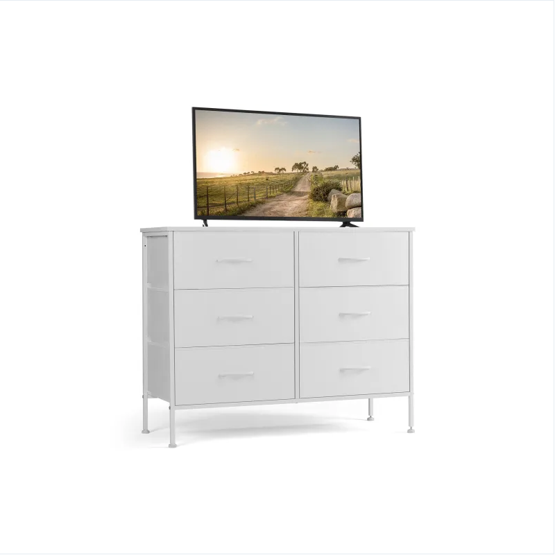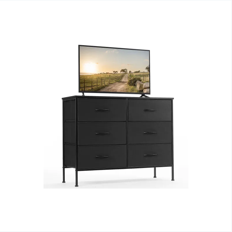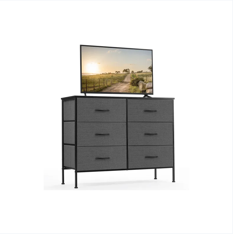 Dresser For Bedroom 6 Drawers Wide Fabric Storage Units Chest Of Drawers For Bedroom With Metal Frame And Wooden Top For TV