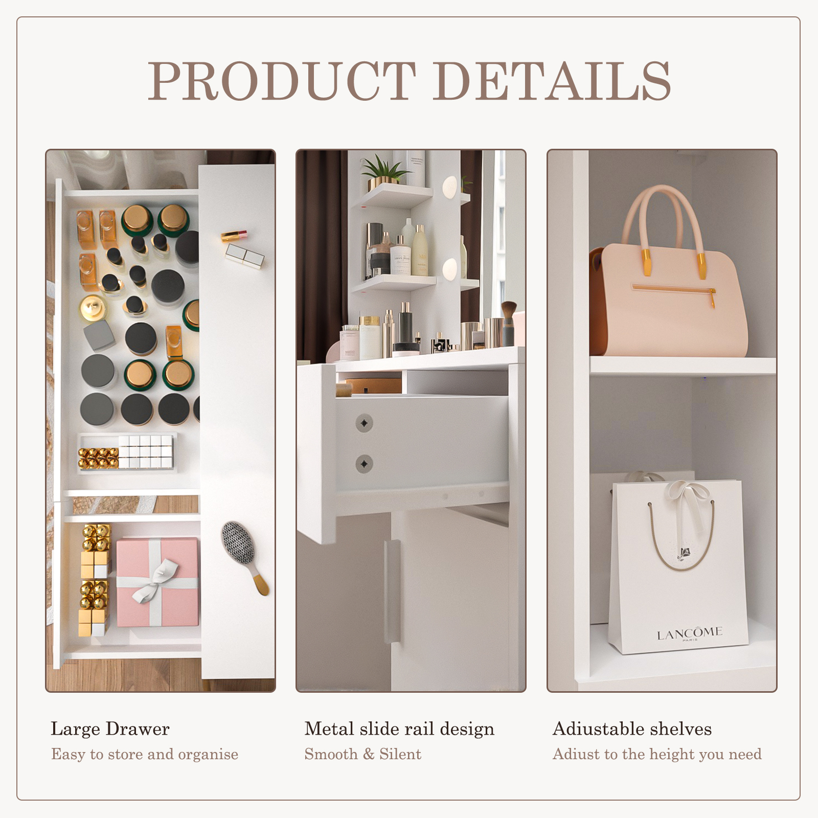 【 Vanity Desk with Large LED Mirror】Large clear mirror with 10 three-color and brightness adjustable LED bulbs, with three modes, warm, natural, and cold, the brightness of the lighted mirror can be adjusted according to different scenes and makeup needs by pressing the screen for a long time.