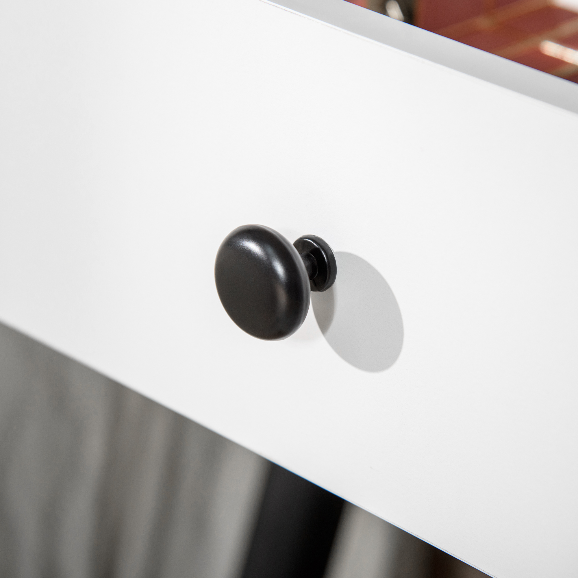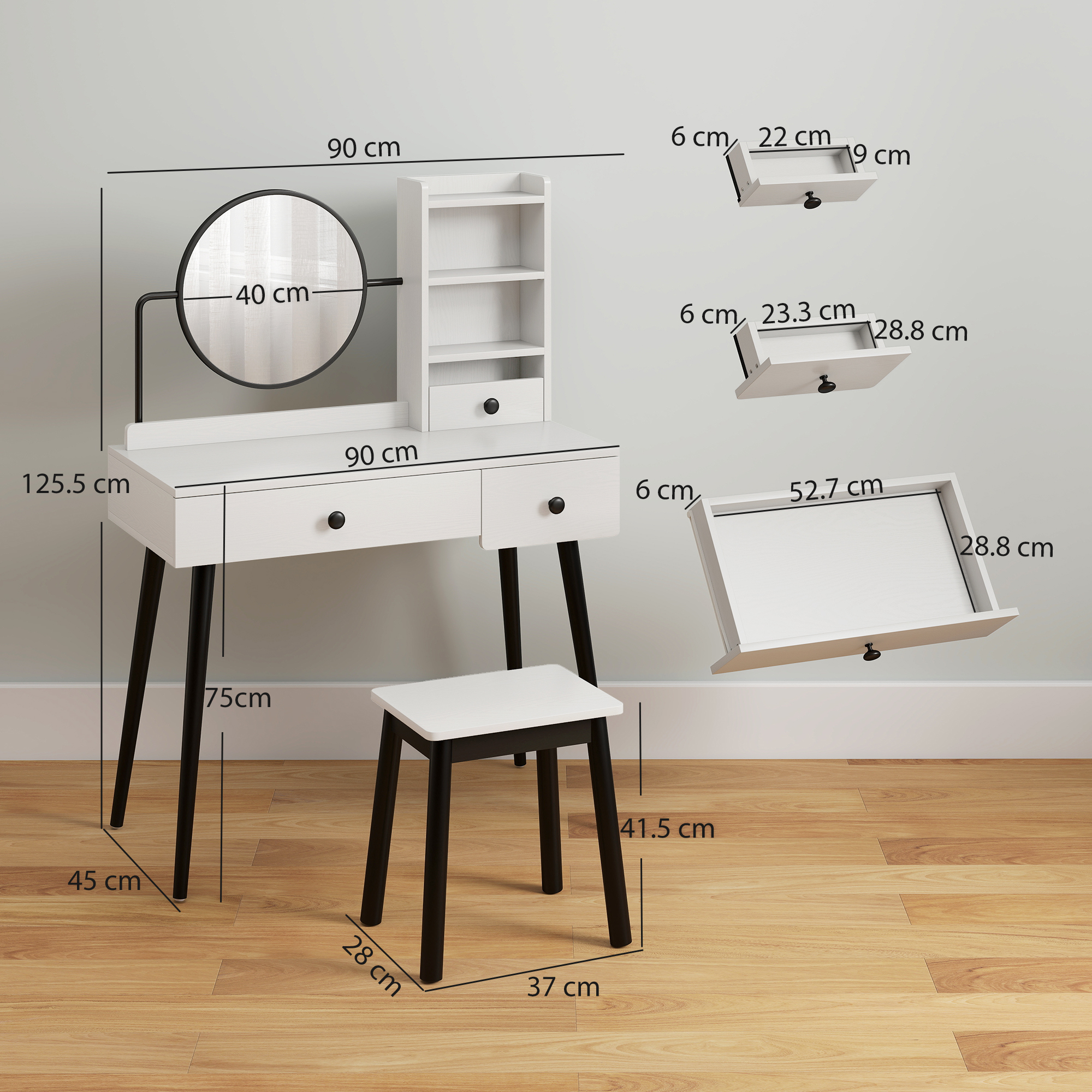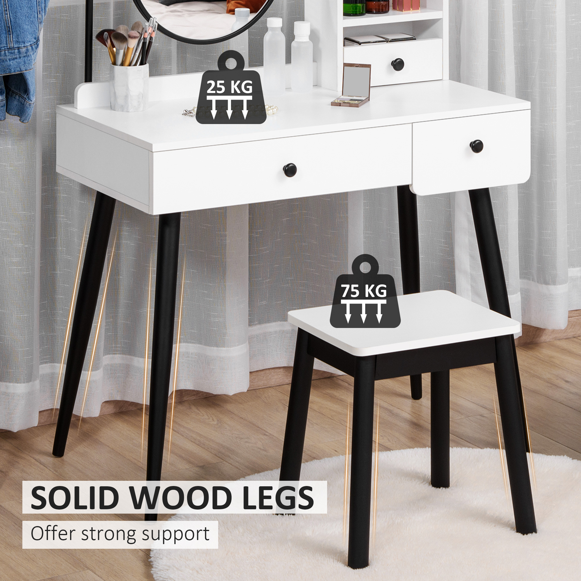 This dressing table set, from , bring beauty into your morning and evening routines. The dresser is sleek - yet more importantly, it's spacious: features two built-in drawers and side shelves, so it's easy to keep all your make up, perfumes, products, jewellery and more storage in a spot - easy to access as you get ready. The fixed mirror is large for plenty of beautiful reflection room. Comes with a matching stool to sit as you get ready.