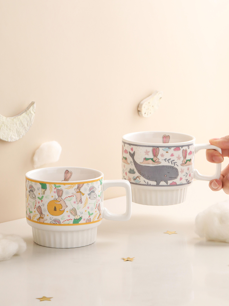Color Classification: Striped Mug (Whale)/352ml Striped Mug (Holding a Round Bunny)/352ml