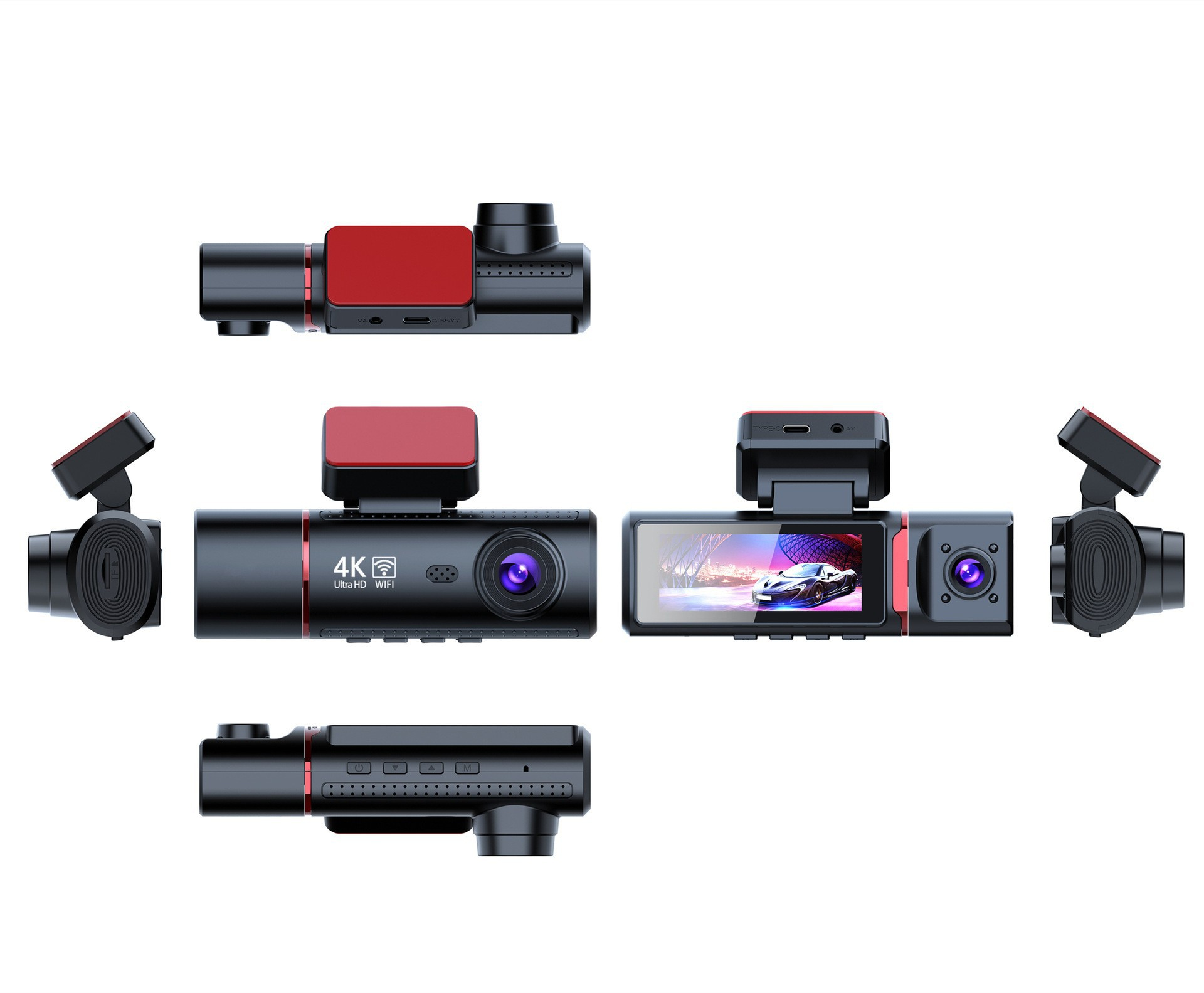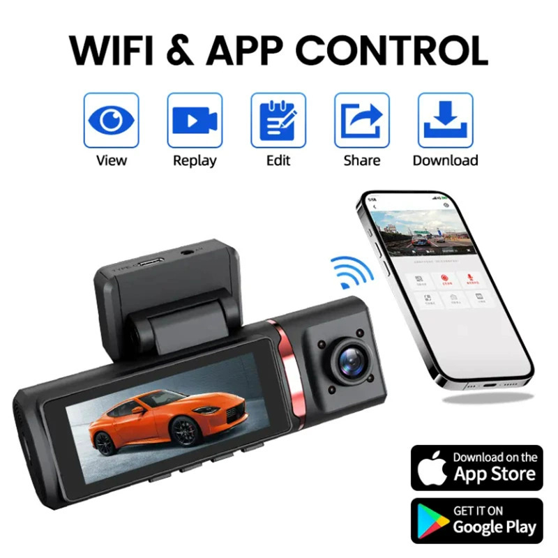 Function: motion detection, loop video, parking surveillance, collision reaction, enhanced night vision, front and back video, short video sharing