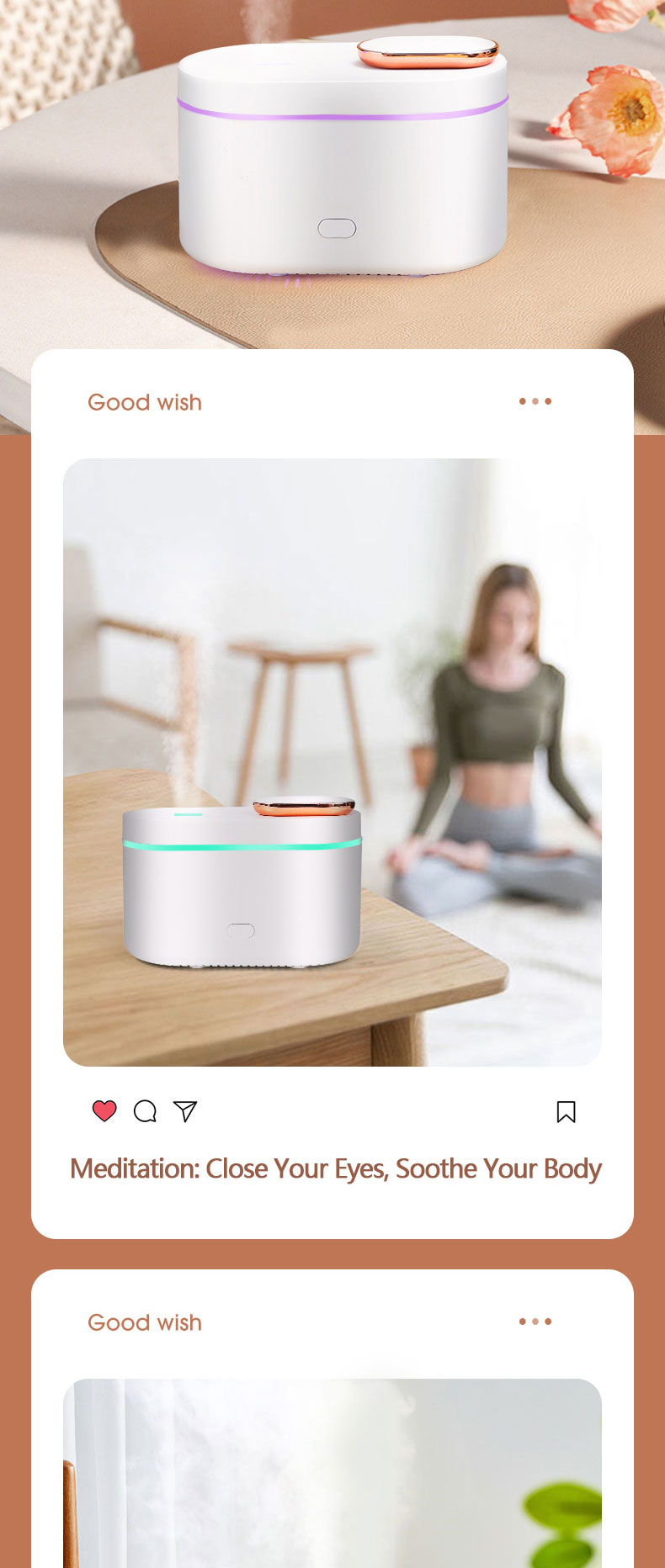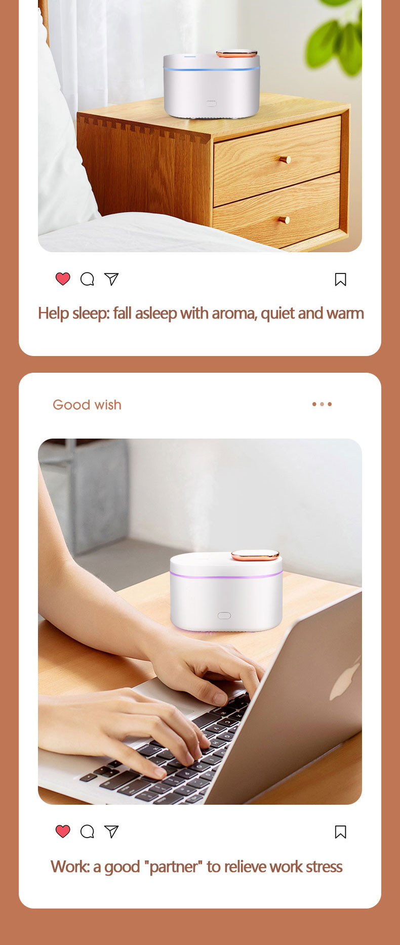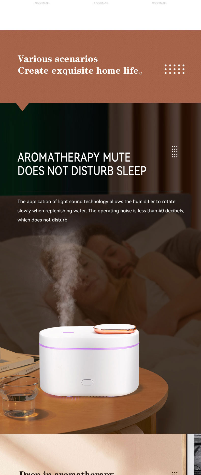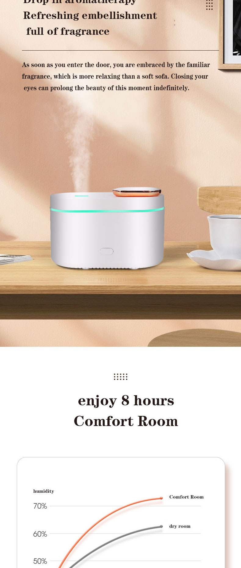 1.Function: Humidifier + Essential oil diffuser + Nigh Light (RGB Changing Color)