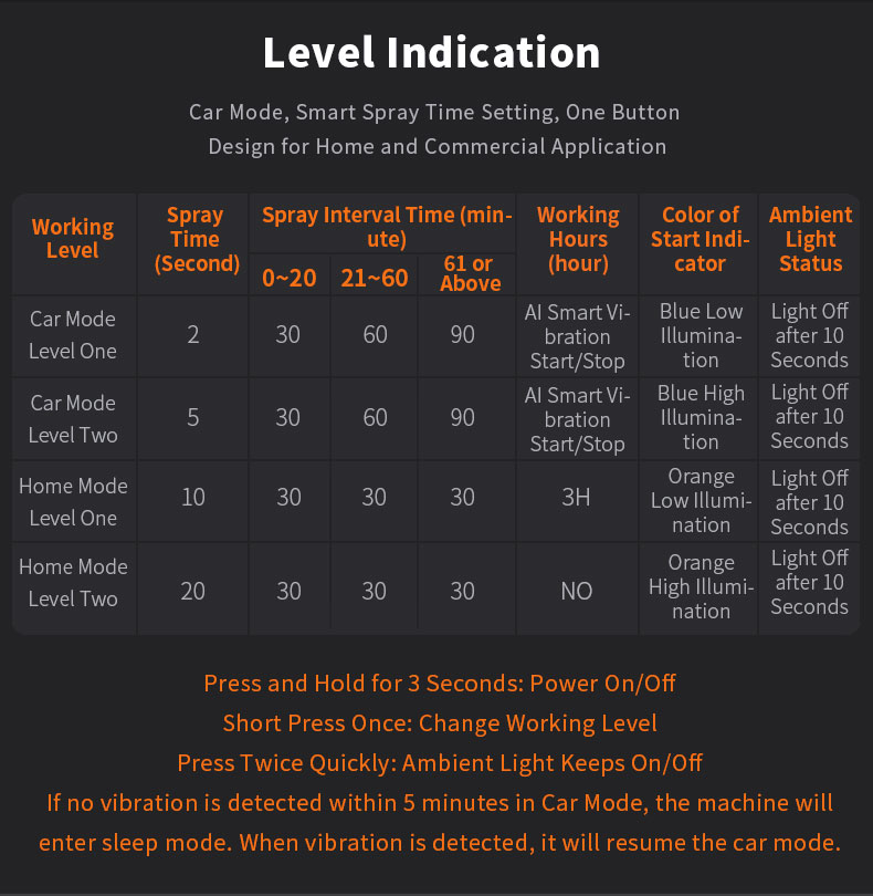 AI smart start and stop mode: drive / automatic smart spray parking: stop working after 5 minutes