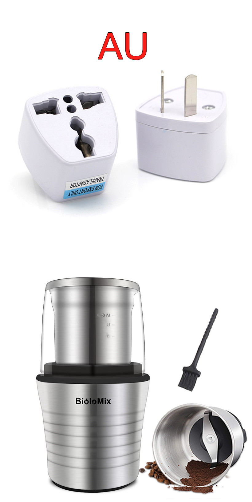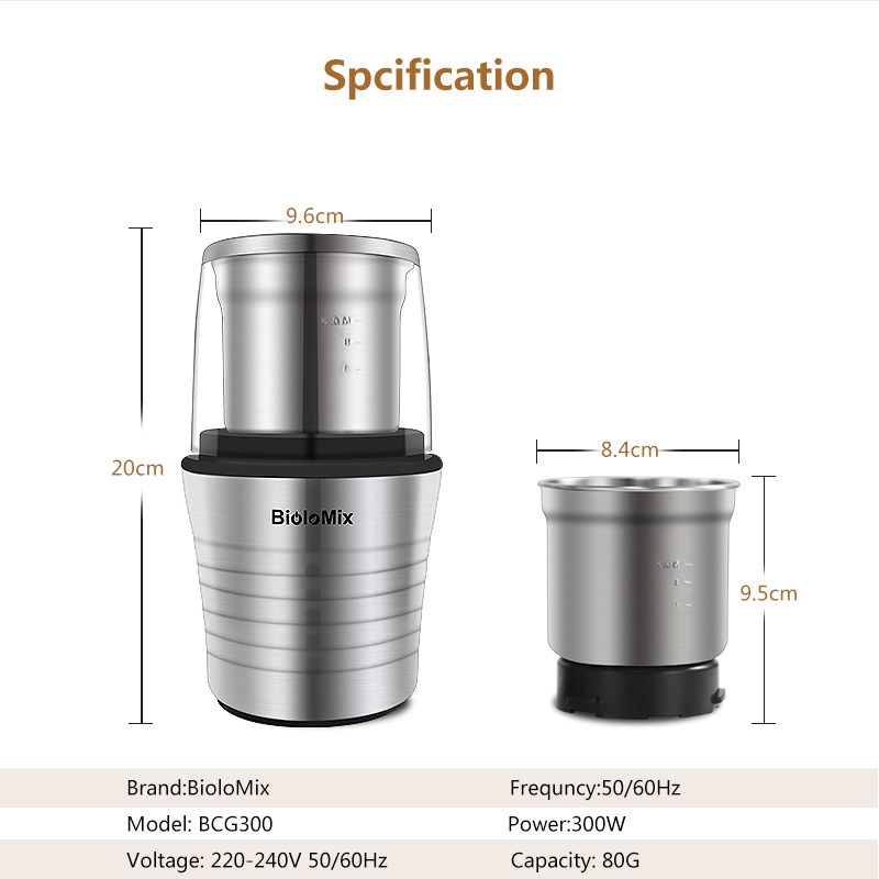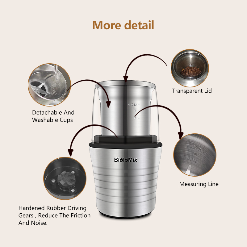 4. Grinder accessory for dry food: coffee beans, nuts, spices, rice, seeds, mung bean powder and ect.