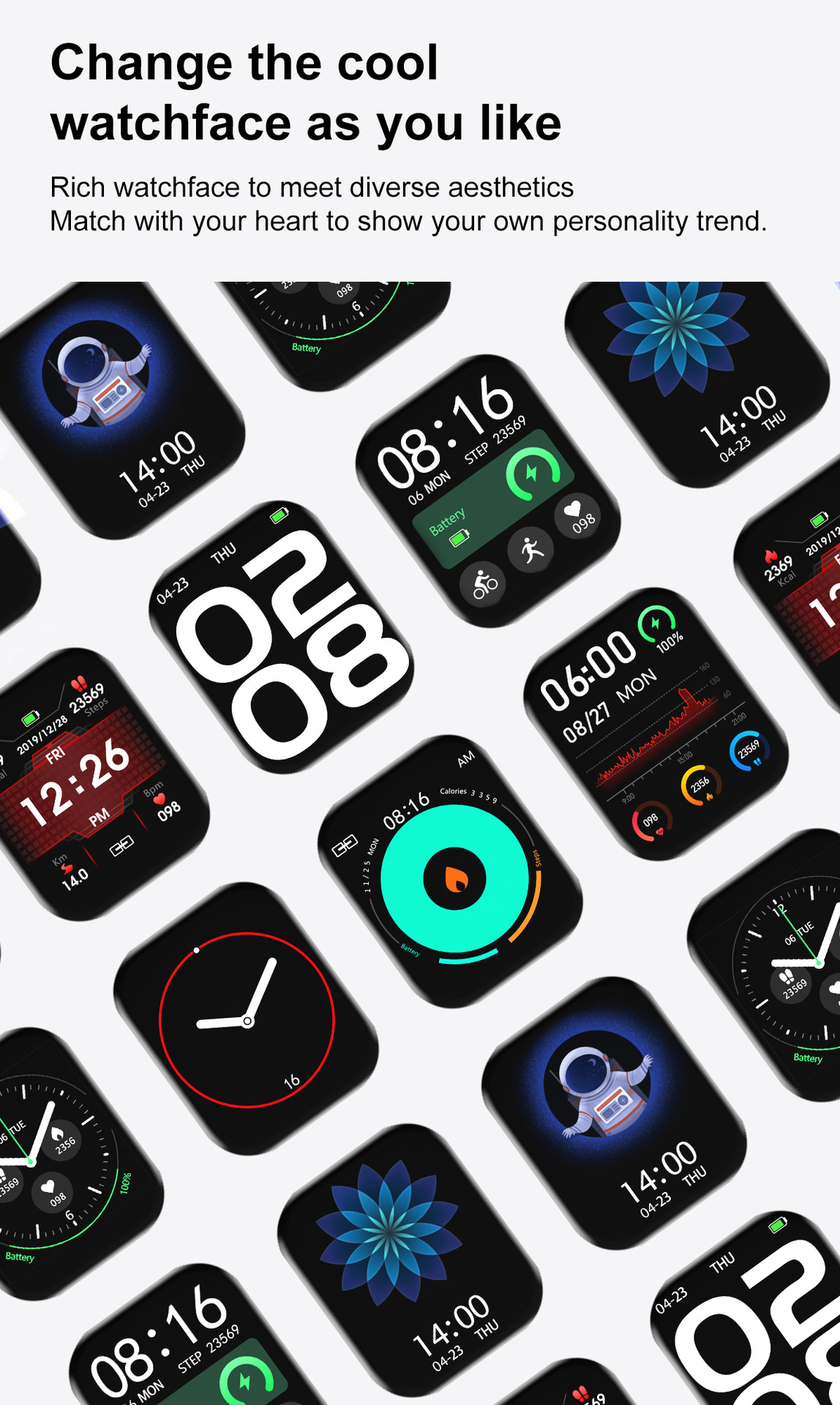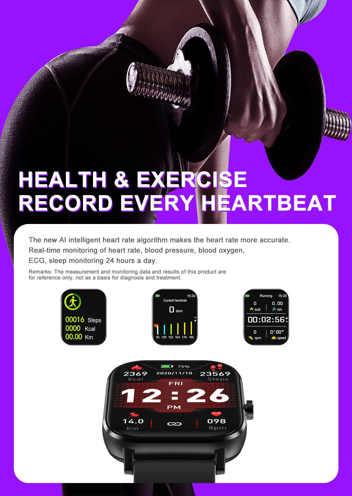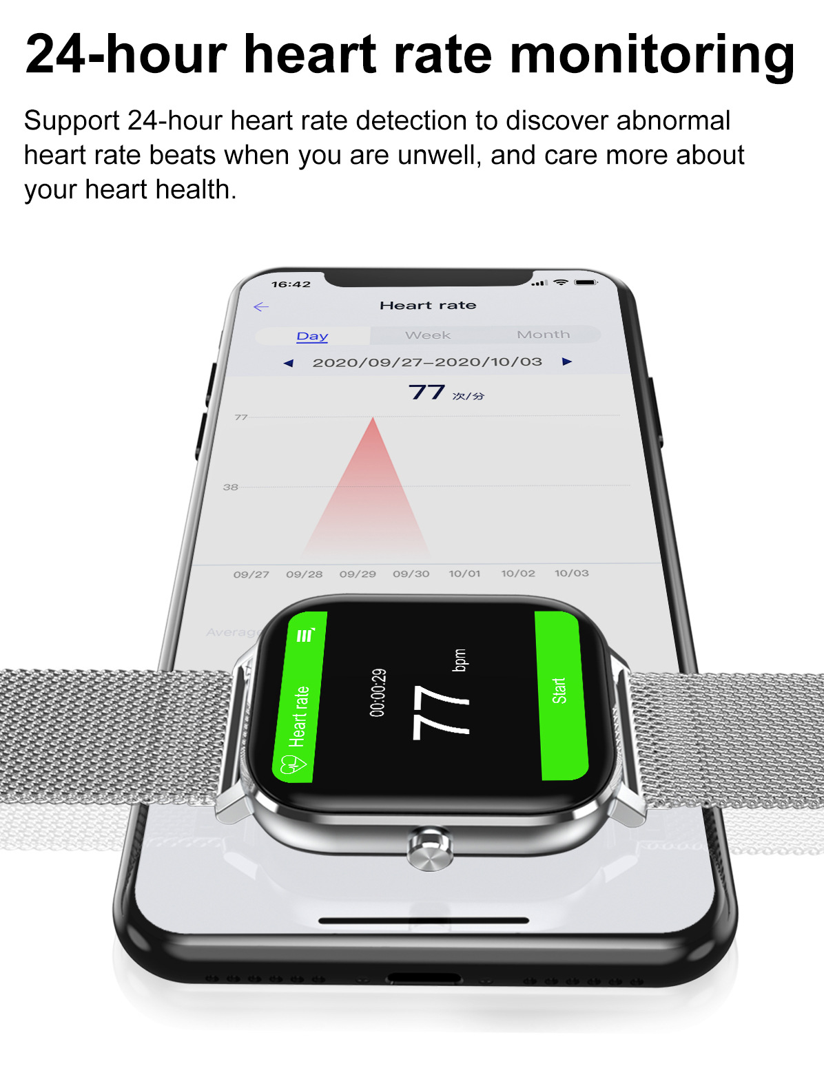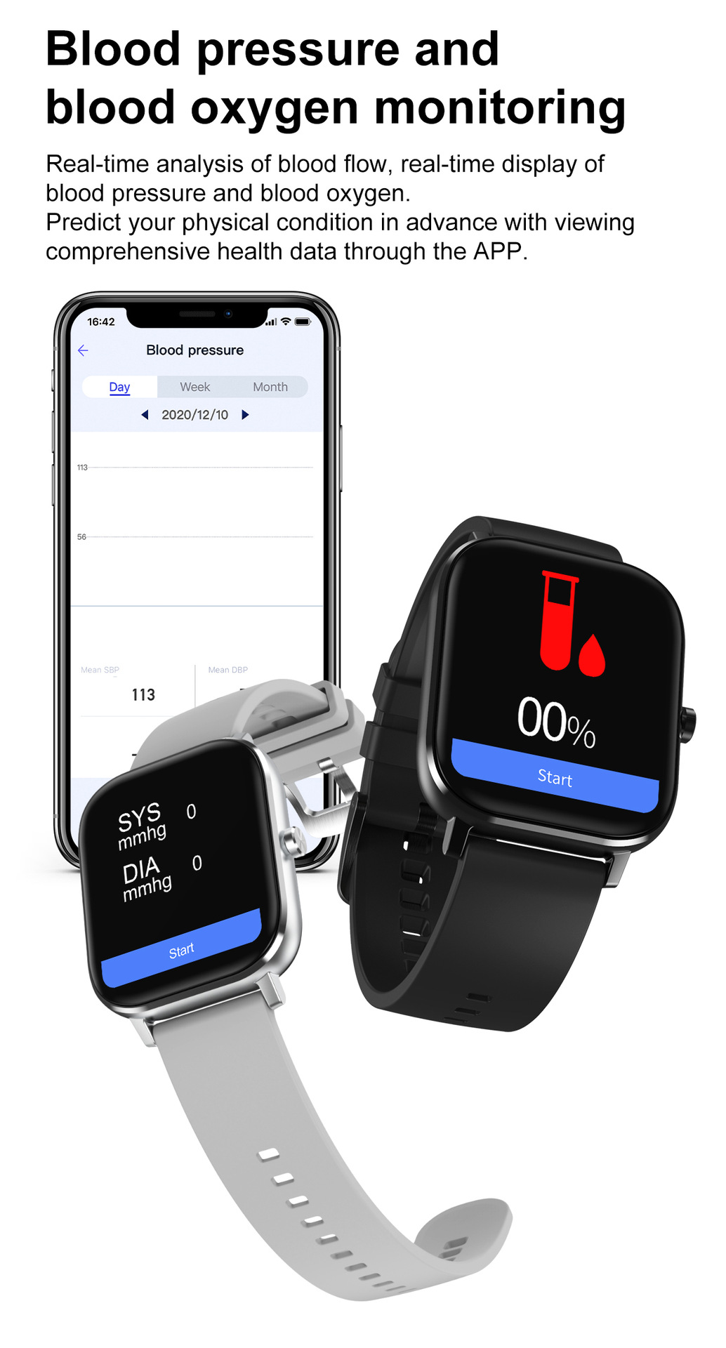 Additional features: step counting, smart reminder, remote control selfie, health monitoring, information push, sleep analysis