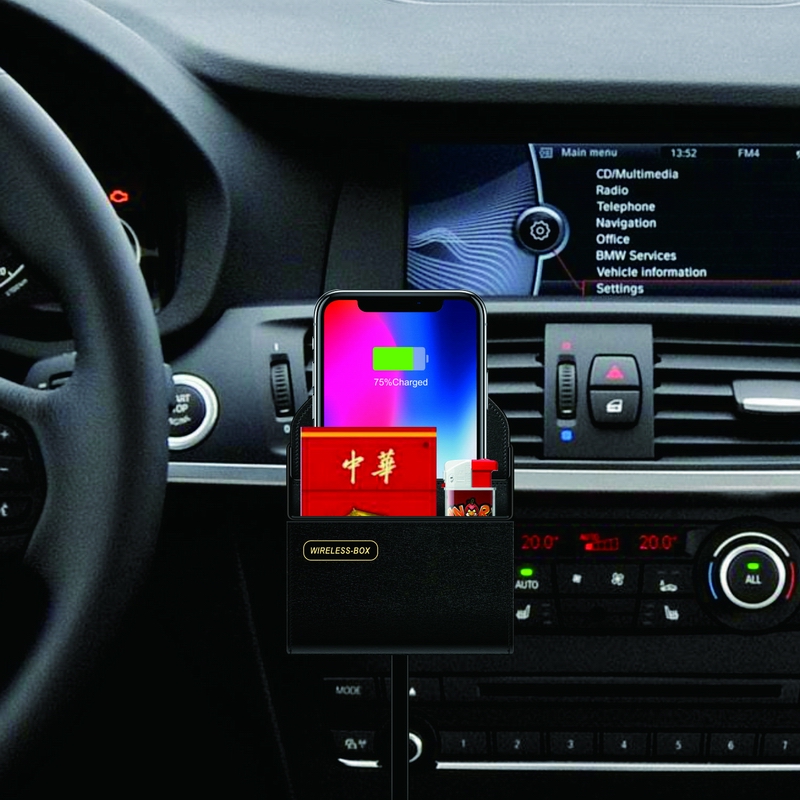 Car storage box mobile phone bracket multi-function air outlet wireless charger car double compartment car charging and storage box