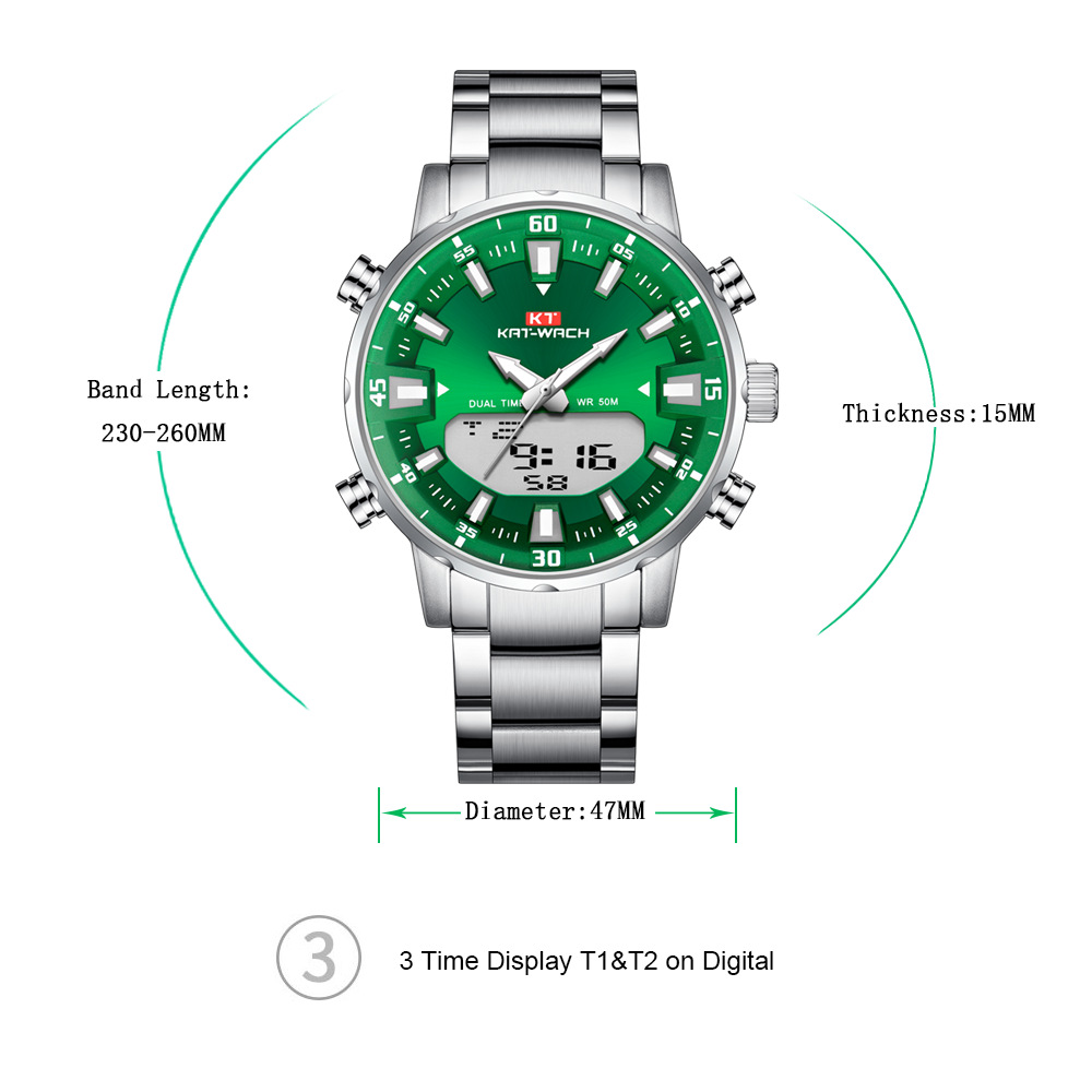 Special functions: luminous, alarm, chronograph, calendar, countdown, 24-hour indication, week display, month display