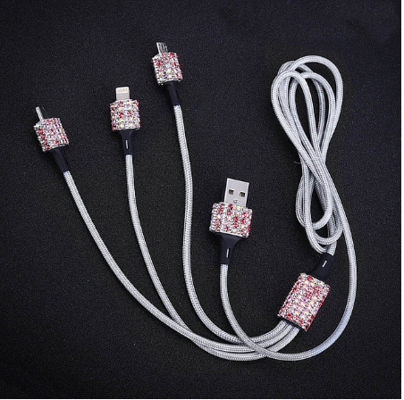 USB Car Charger For Mobile Phone Tablet GPS Fast Charger Crystal Diamond Dual USB Car Phone Charger Data Line Wire in Car Ornament