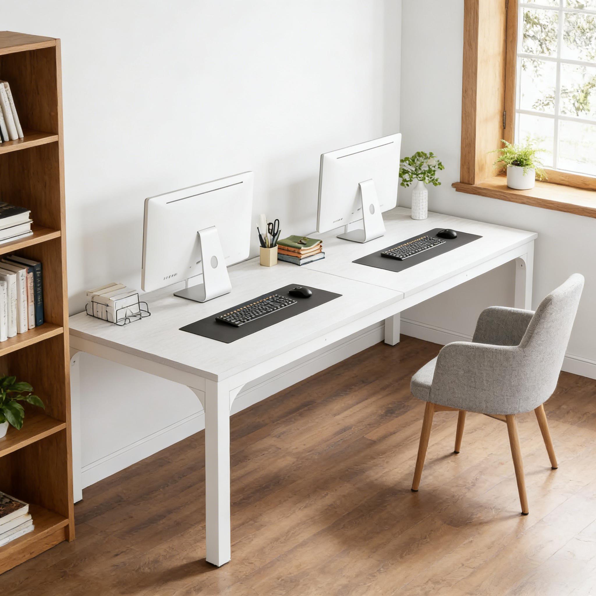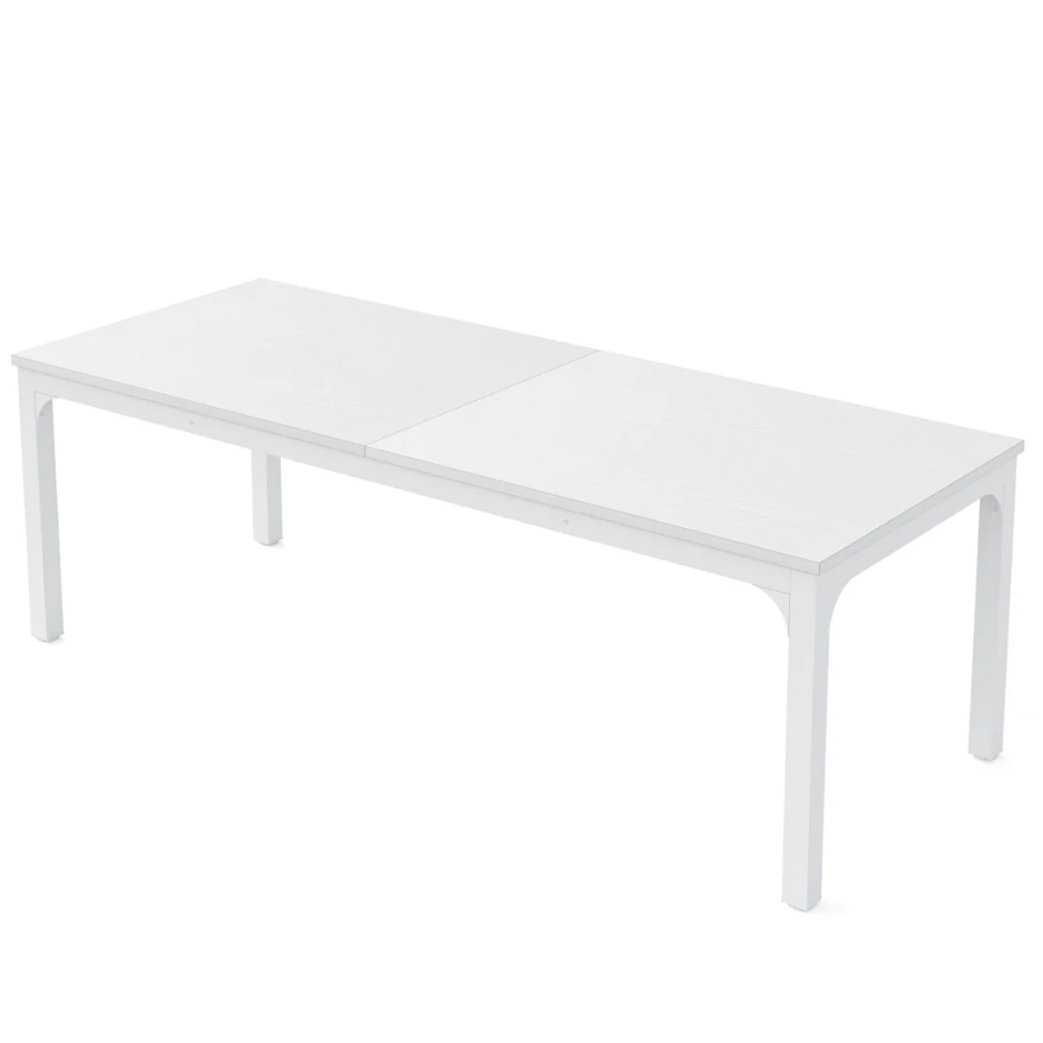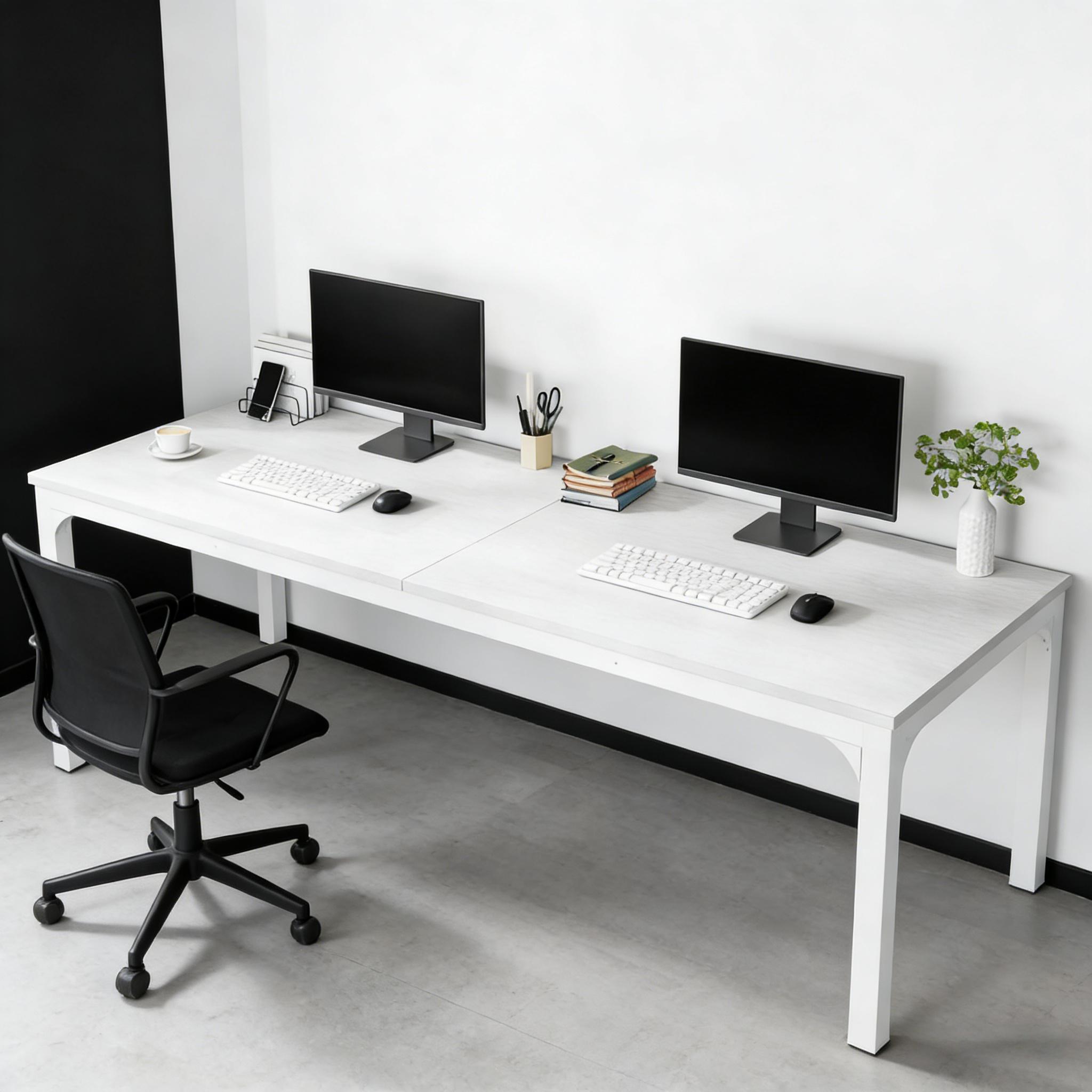 Important Reminder!!! 1) Attention: All products in our store do not support Canada self pickup ordering. Please do not create shipping labels for Canada. Our American products do not support self pickup to Canada 2)We do not ship to Alaska, Hawaii, US protectorates (e.g., Puerto Rico), P.O. boxes, or APO/FPO addresse 3)We don’t accept non-defective remorse returns Robust Construction - The office desk's panel is made of a 0.59" thick MDF Board, and the legs are built with heavy-duty powder-coated iron pipes measuring 1.96" by 1.96" in width. This construction offers industrial-style stability and durability, with a weight capacity of up to 200lbs. Expansive Workspace - The Extra Long Office Desk measures 78.74"W x 27.55"D x 29.52"H. This large desktop provides ample space for your laptop, phone, books, files, and more, keeping everything you need for efficient home office work within your reach. Dual Workspace Desk - This double workstation can easily accommodate two computers simultaneously. Two people can work side by side, independently, without disruptions, making it ideal for roommates or collaborative work. Simplistic Industrial Design - The office desk features a minimalist modern design with no additional decor, fulfilling your home office furniture needs. The adjustable foot pads aid in eliminating any wobbles and protect your floors from scrapes. Quick Assembly & Easy Maintenance - The desk comes with tools and instructions for quick and straightforward assembly. Its smooth surface allows for easy cleaning, letting you wipe off any dirty stains effortlessly.