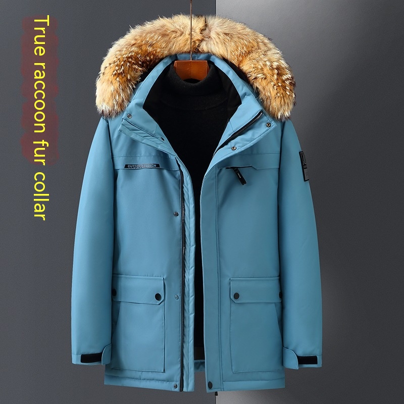 Duck Down Down Jacket Men's Mid-length Thicken Big Fur Collar