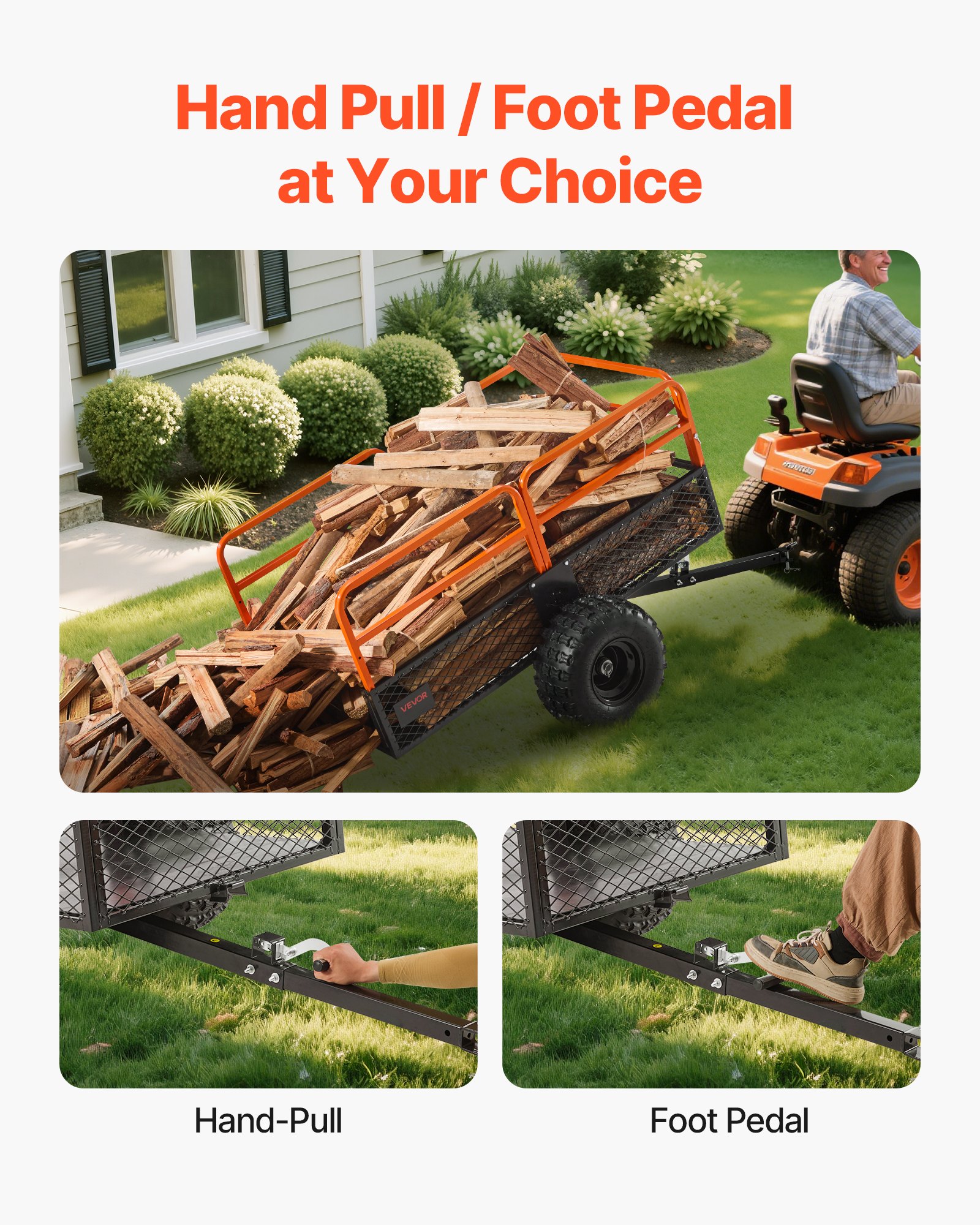 Universal Compatibility: This garden trailer features a 0.47"/12mm pin and two pin holes, making it compatible with various equipment such as tractors, ATVs, UTVs, and lawnmowers. It easily connects, boosting efficiency and reducing operation time.