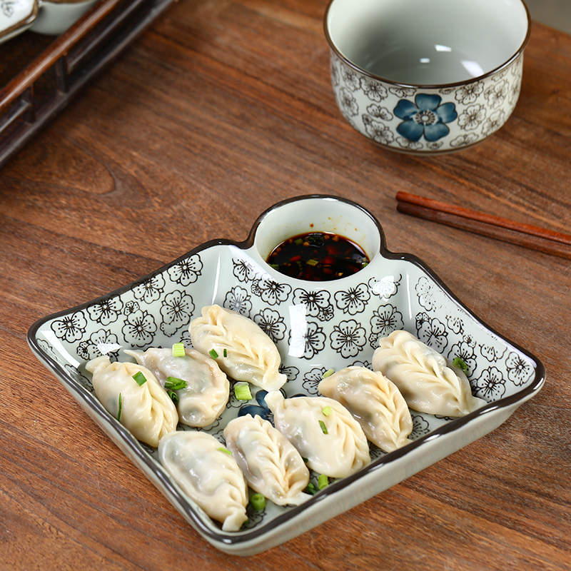 Color classification: 7 dumpling plate Blue rich, dumpling plate Red rich, dumpling plate big red flower, dumpling plate auspicious flowers, dumpling plate 4 colors each
