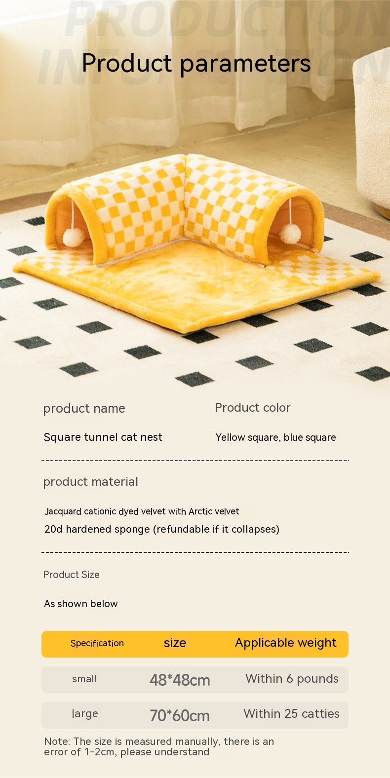 Specifications: 48 * 48cm, yellow tunnel cushion, 66 * 60cm, yellow tunnel cushion, 72 * 64cm, yellow tunnel cushion, 48 * 48cm, blue tunnel cushion, 66 * 60cm, blue tunnel cushion, 72 * 64cm, blue tunnel cushion,