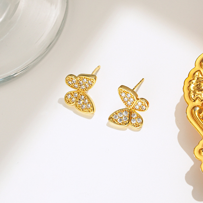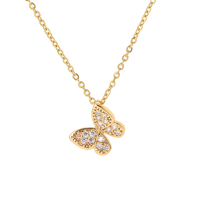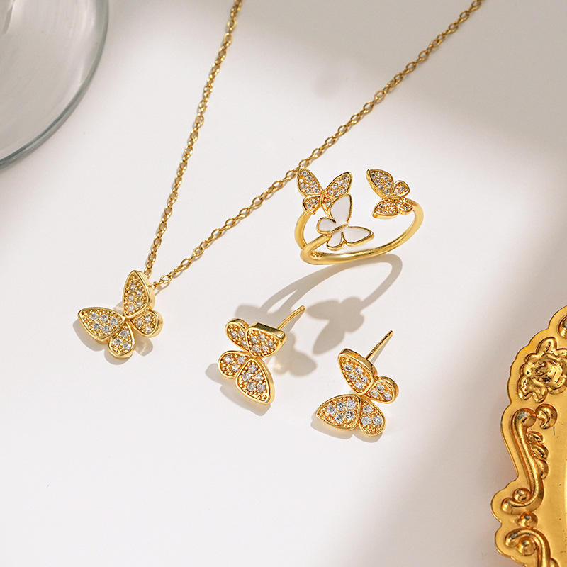 Color: gold butterfly suit, gold small butterfly necklace (chain steel pendant copper), small butterfly stud earrings (copper), small butterfly ring (copper), Silver small butterfly necklace (chain steel pendant copper)