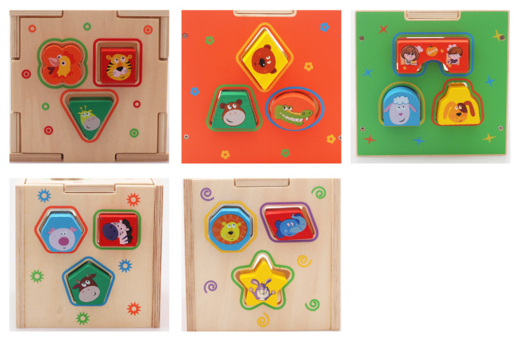 1. Open the puzzle box and take out the blocks of various shapes to teach the baby to recognize different shapes and colors. The size of the small blocks and holes are not the same. Among them, small blocks can pass through the holes.