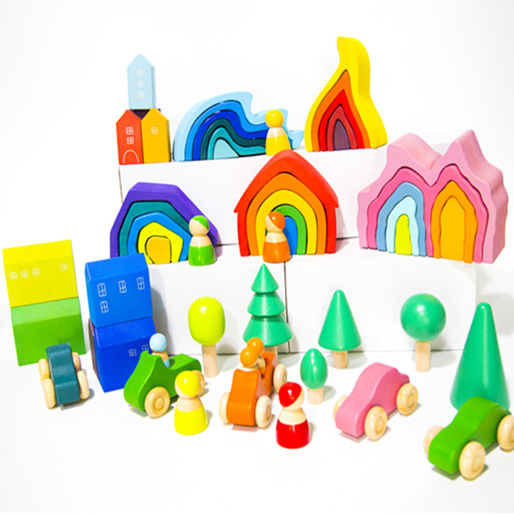 Color: forest trees, seven beech wood cars, rainbow house, beech rainbow house, sea waves, coral, stone, flame