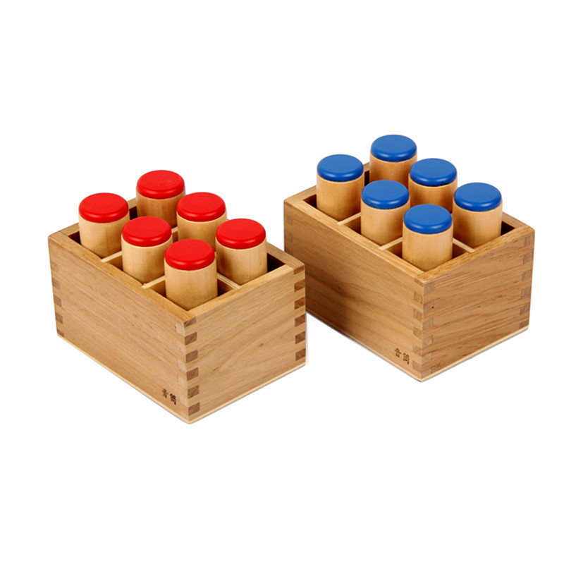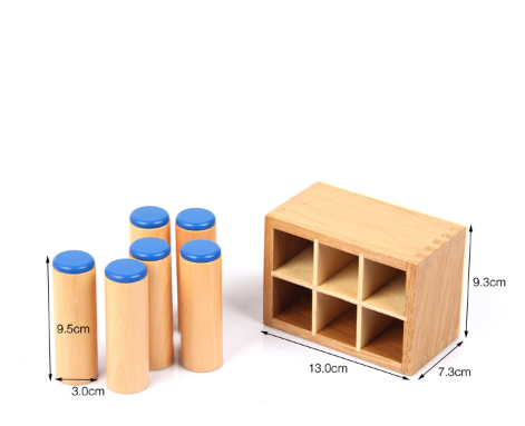 This is a very interesting and popular Montessori game for adults and even children! In wooden boxes with matching red and blue lids, cylinders with red and blue tops are grouped separately. Have your child shake a red cylinder to hear its unique sound, and then look for a blue cylinder that produces similar sounds. Eventually, all of these will pair together. Check that the bottom of each cylinder matches the color correctly.