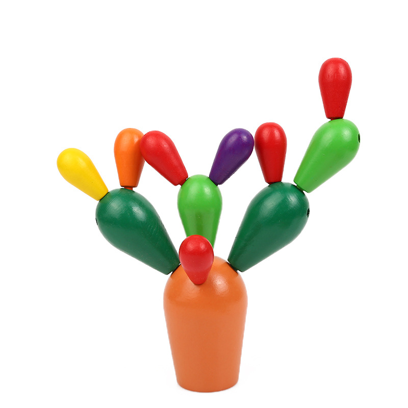 Early Education Wooden Balancing Cactus Toy Removable Building Blocks for Baby Kids Developmental Intelligence Toy