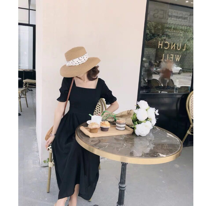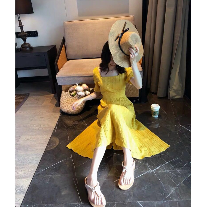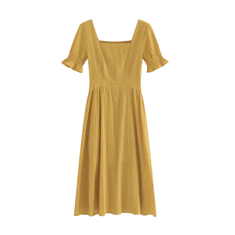 Early Spring Over The Knee Design French Retro Bellflower Tea Break Waist Dress