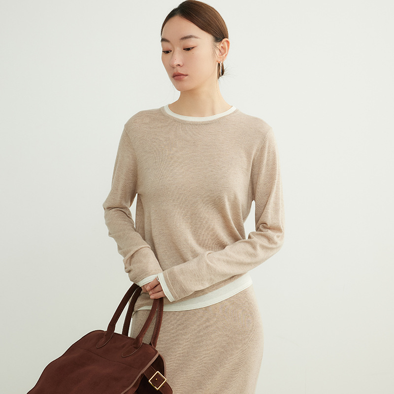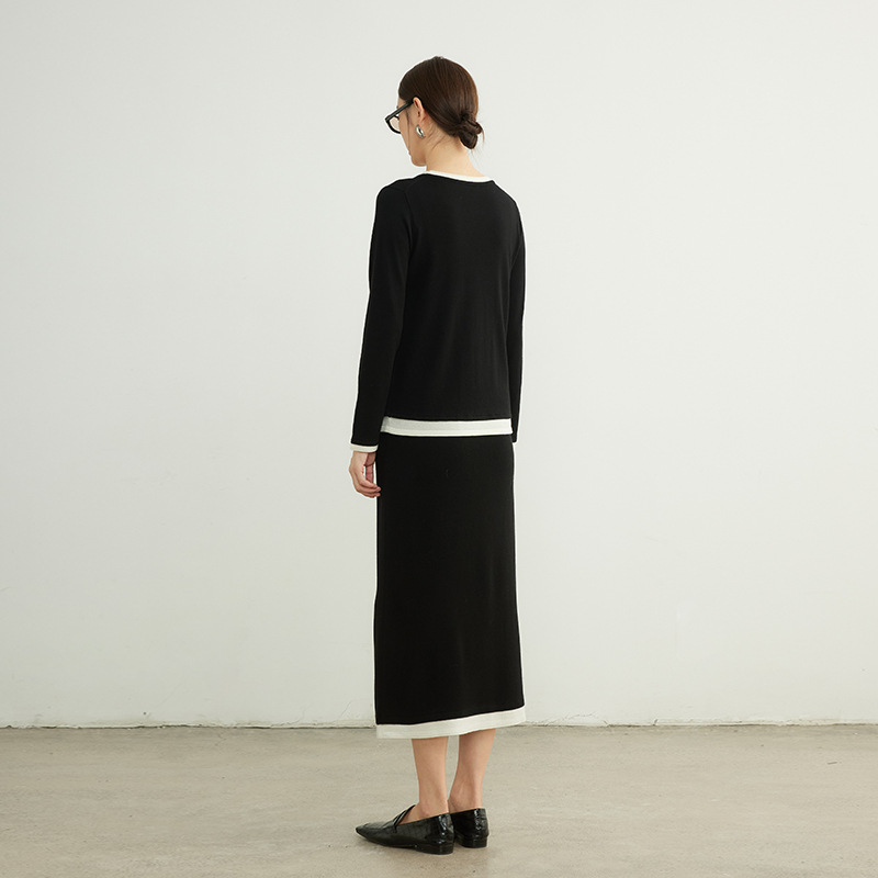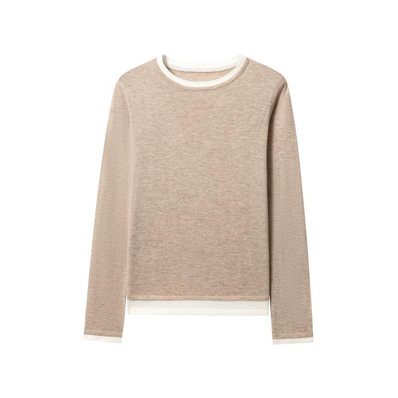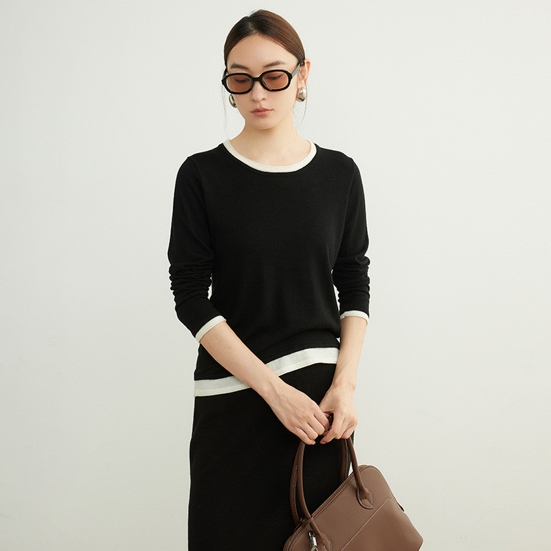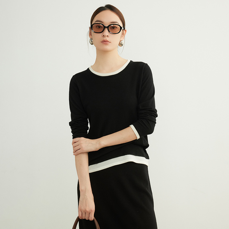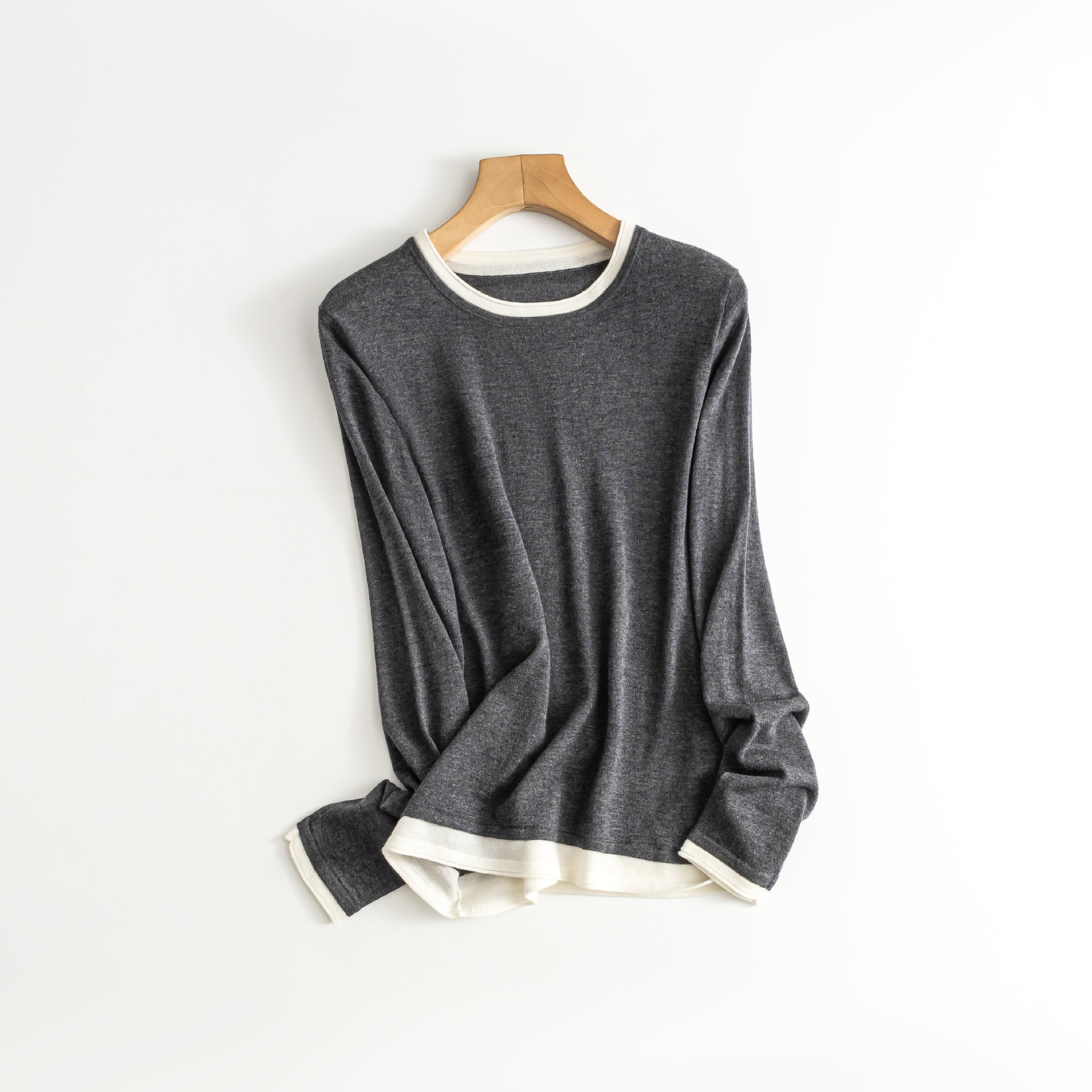 Early Spring Style Wool Sweater Women's Contrast Colors False-two-piece Bottoming Shirt