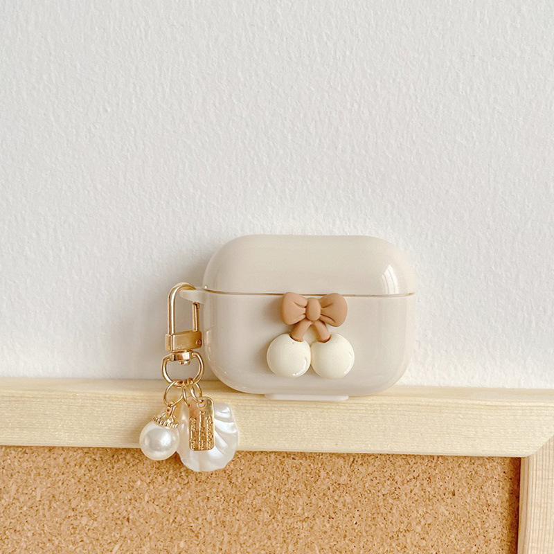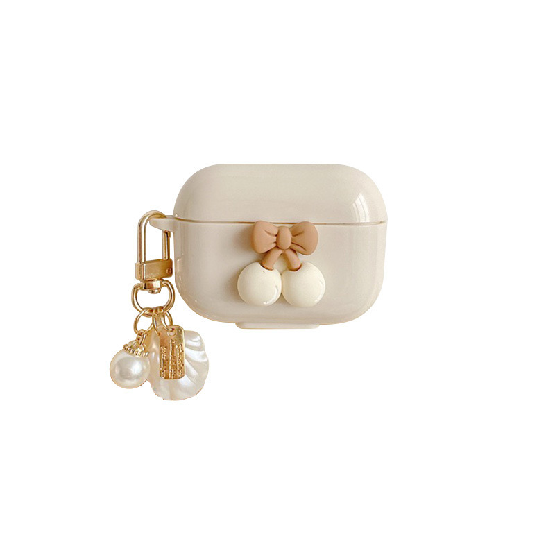 Color: earphone sleeves-cherry-apricot ribbon shell pendant