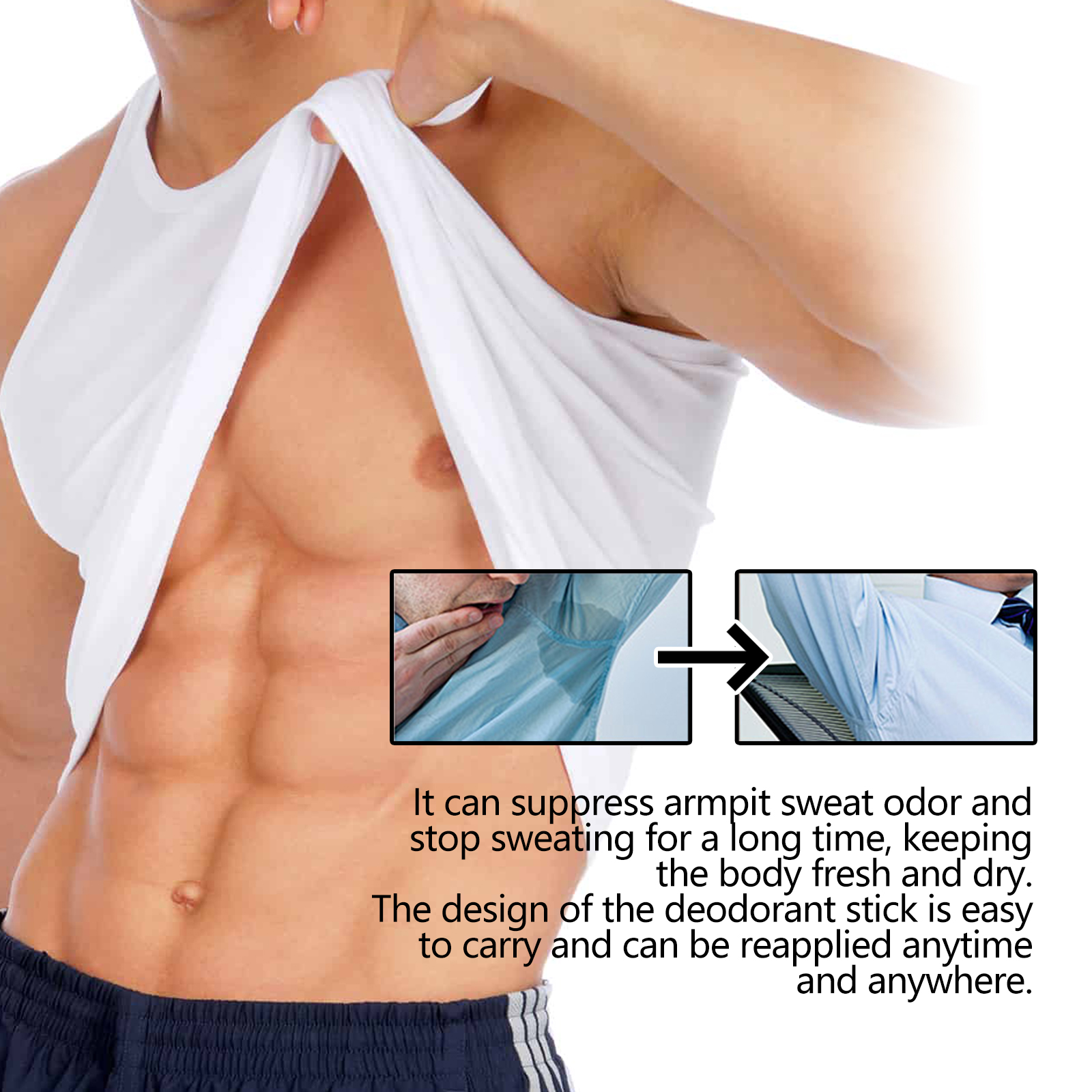 Our Control Odor Stick contains salvia officinalis, orchid extract, rosa rugosa flower oil. It can suppress armpit sweat odor and stop sweating for a long time, keeping the body fresh and dry. Its use is very simple: Clean and make sure the skin of your armpits is dry. Open the bottle cap, rotate the bottom of the deodorant stick to expose an appropriate amount of deodorant, and gently apply it on the armpit skin to cover the entire armpit area. Wait a few minutes for it to be fully. The texture is refreshing and easy to absorb, leaving no sticky feeling, giving users a more comfortable experience.
