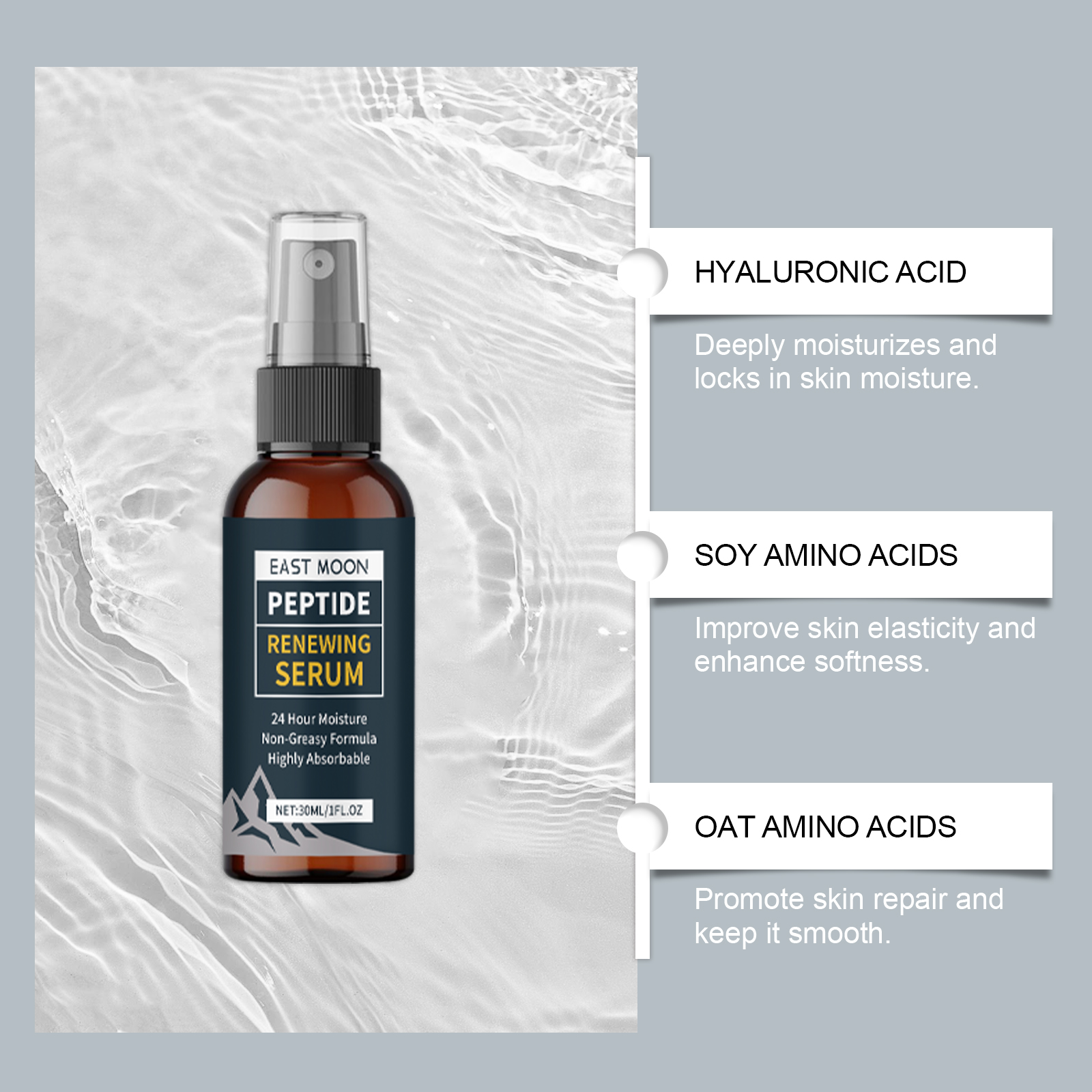 Our face serum contains soy amino acids, oat amino acids. It can reduce wrinkles and show younger skin. The way to use it is simple: clean your face and keep it dry. Apply appropriate amount to face. Massage gently until absorbed. And can nourish and moisturize, keep the skin hydrated.