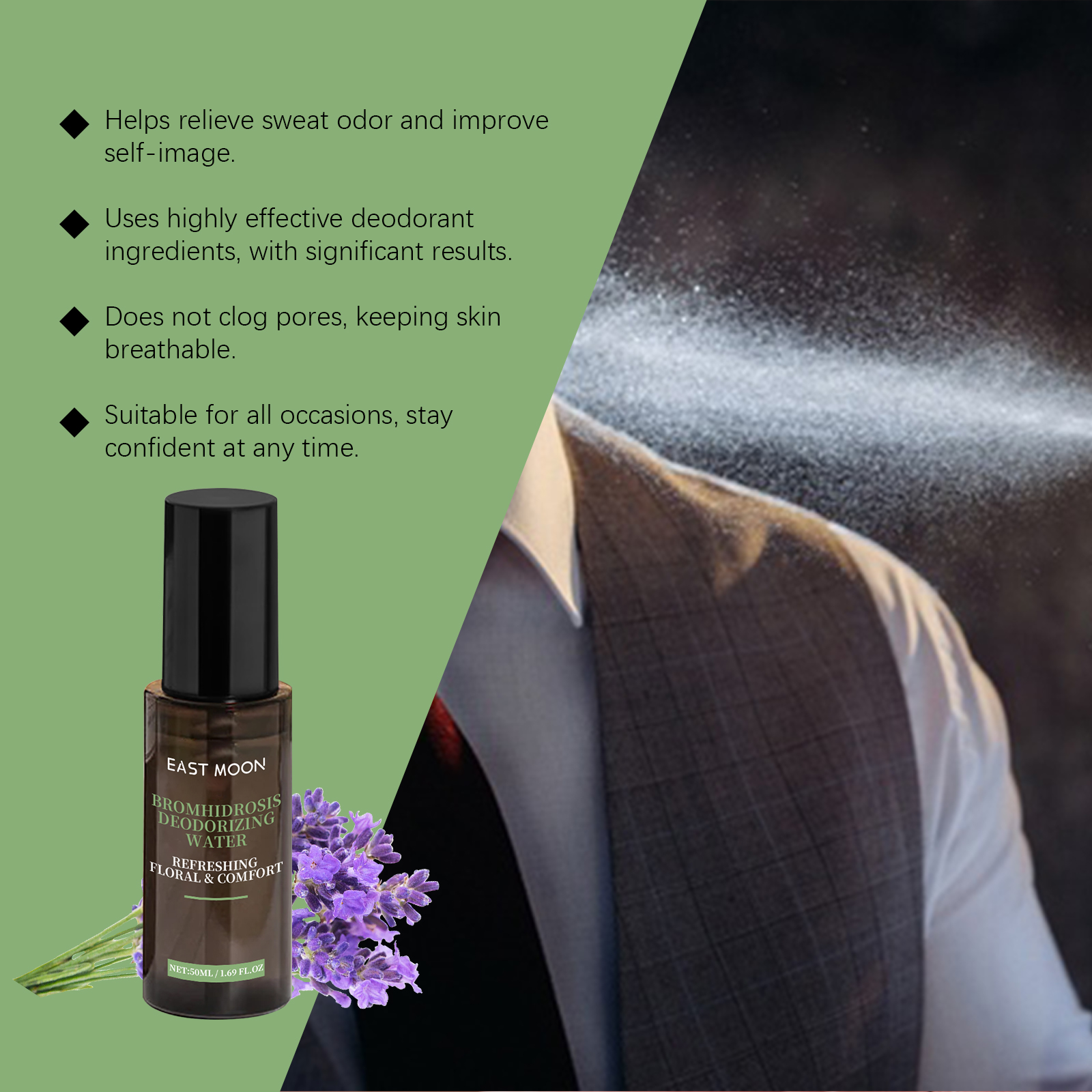 Our men's freshening spray contains lavender extract, chrysanthemum extract, Hypericum perforatum extract. It will smell fresh and deodorize for a long time. Soothe skin and reduce irritation. Suppress the smell and keep it fresh. The way to use it is simple: 1. Clean and dry the underarm area before use. 2. Gently shake the spray bottle, hold the spray bottle about 10-15 cm from the armpit, and evenly spray the appropriate amount of product. 3. Gently massage the underarm area with your hands to allow the skin to absorb. Lavender essence delivers a long-lasting refreshing experience that will keep you clean throughout the day. Attractive smells can increase a man's sexual attraction.