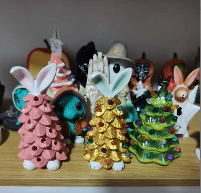 Colors: Pink rabbit, white rabbit, cyan rabbit