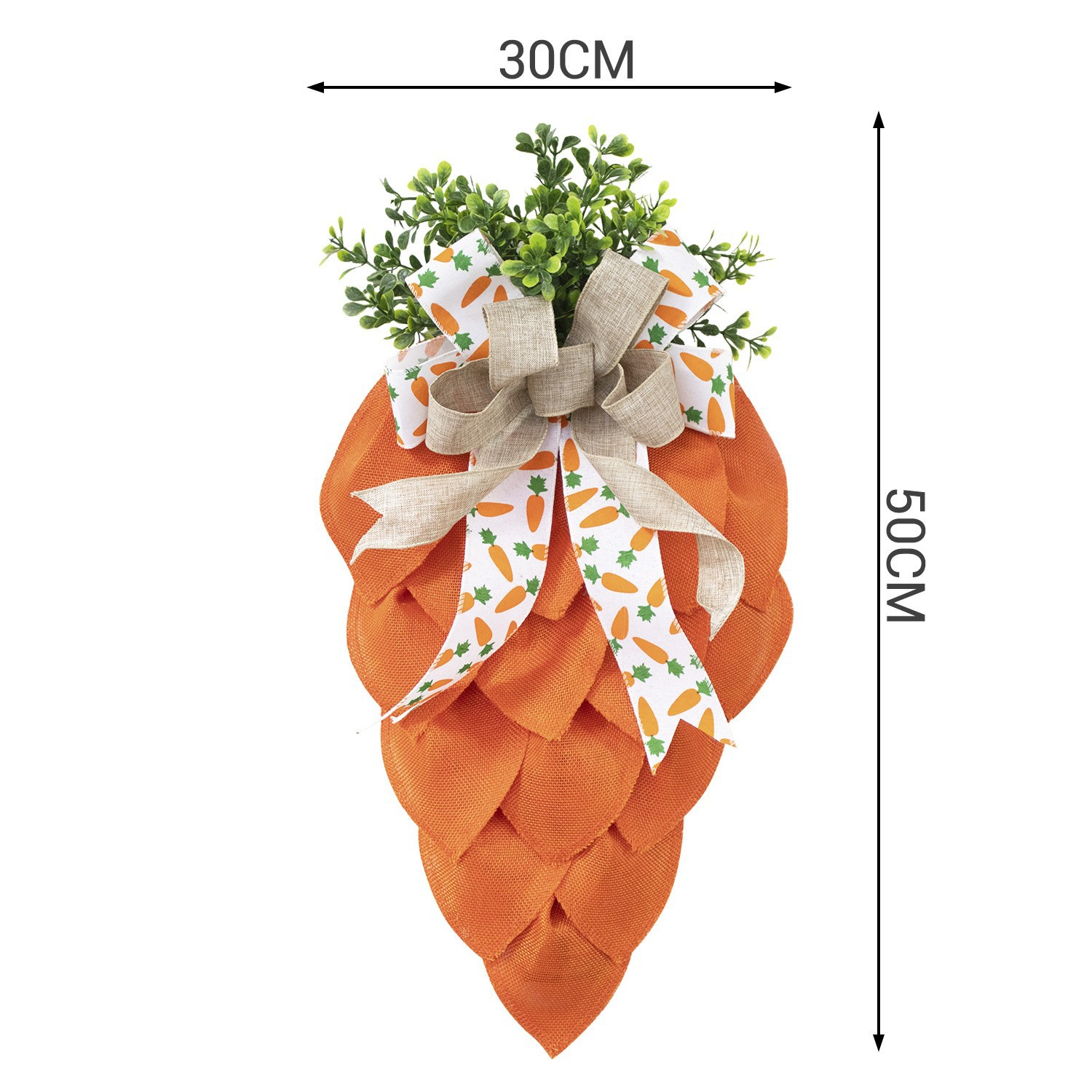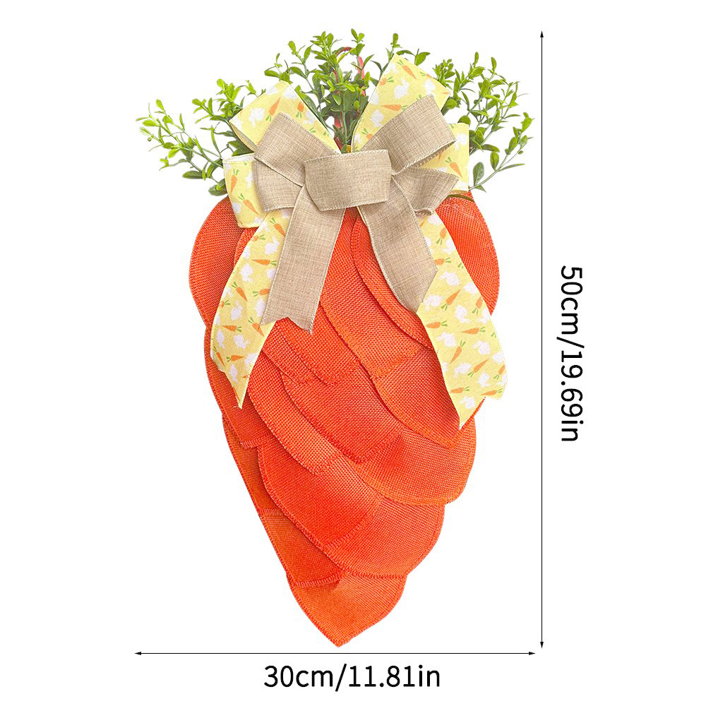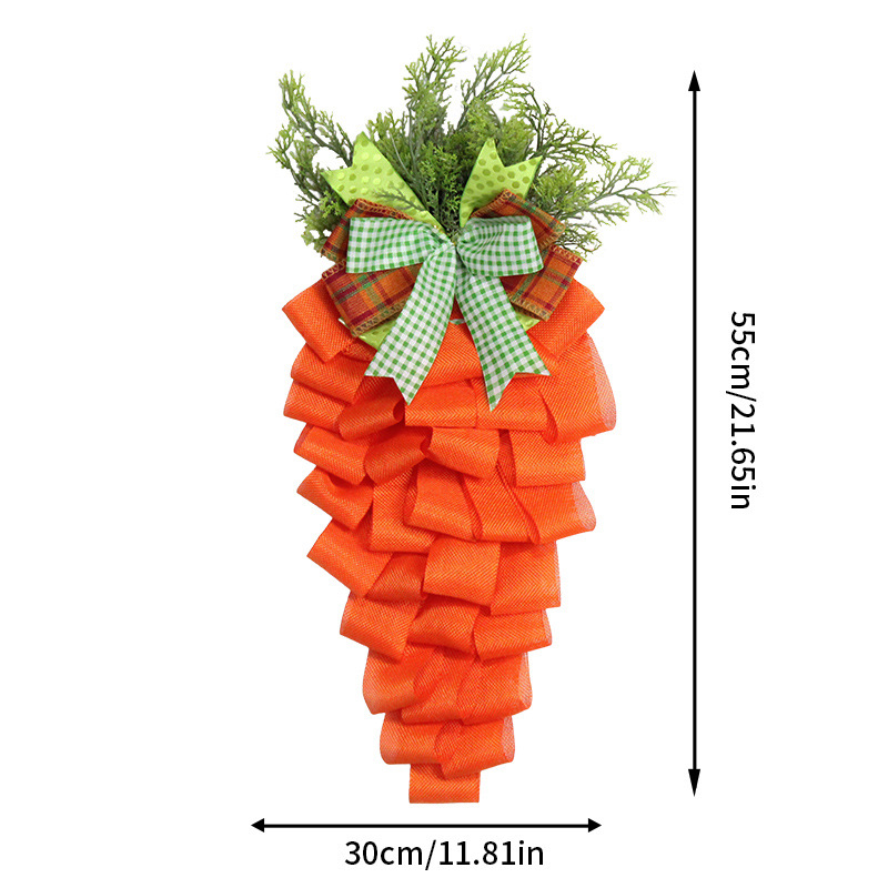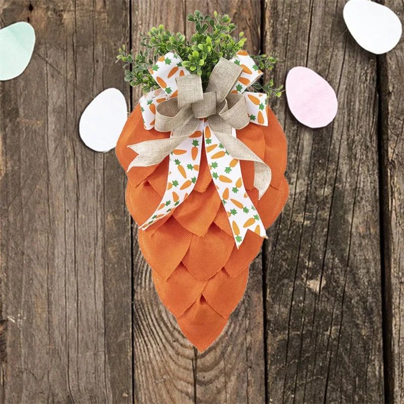 Easter Carrot Wreath Rustic Bow Cloth Wreath Garland With Green Leaves For Front Door Decoration