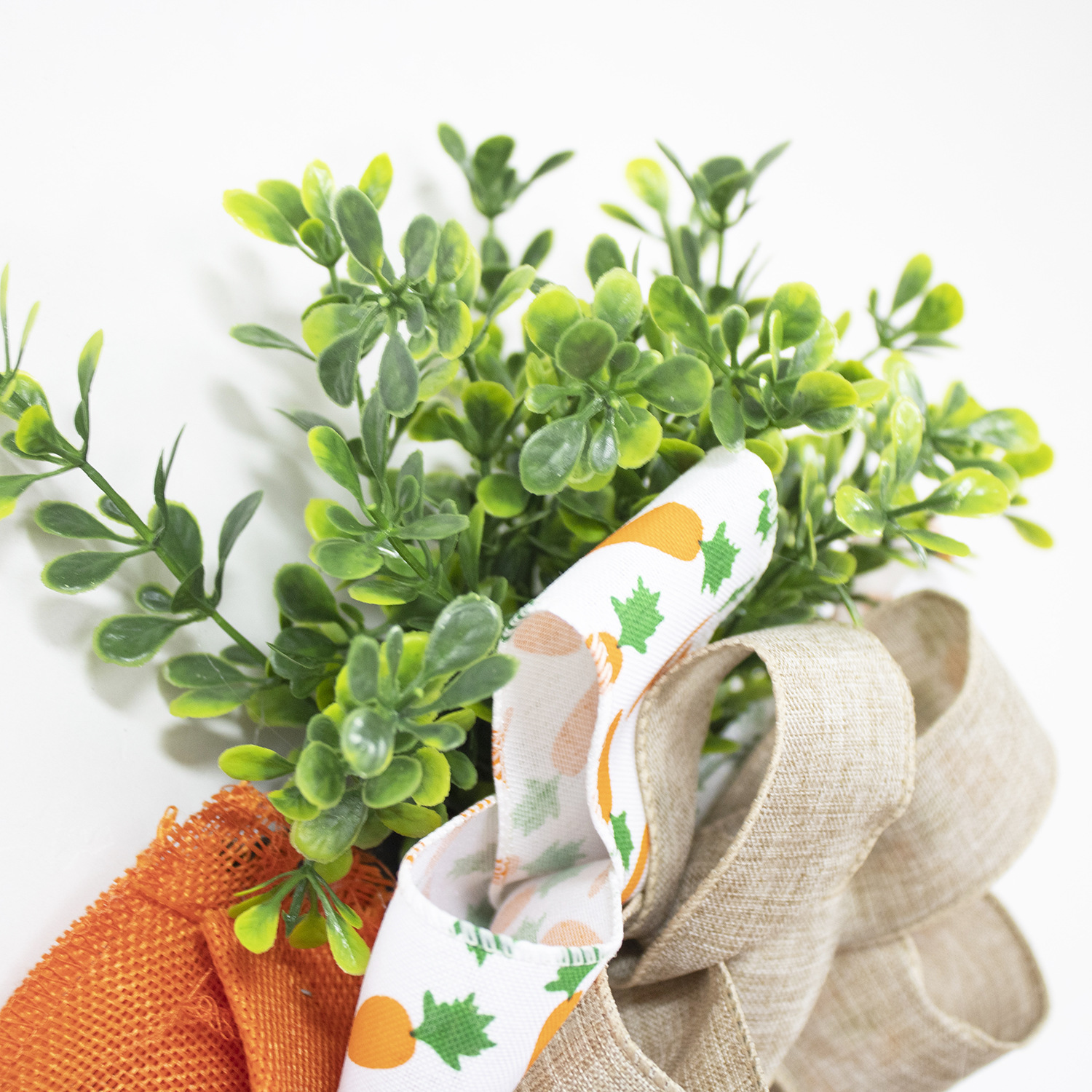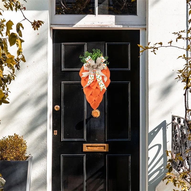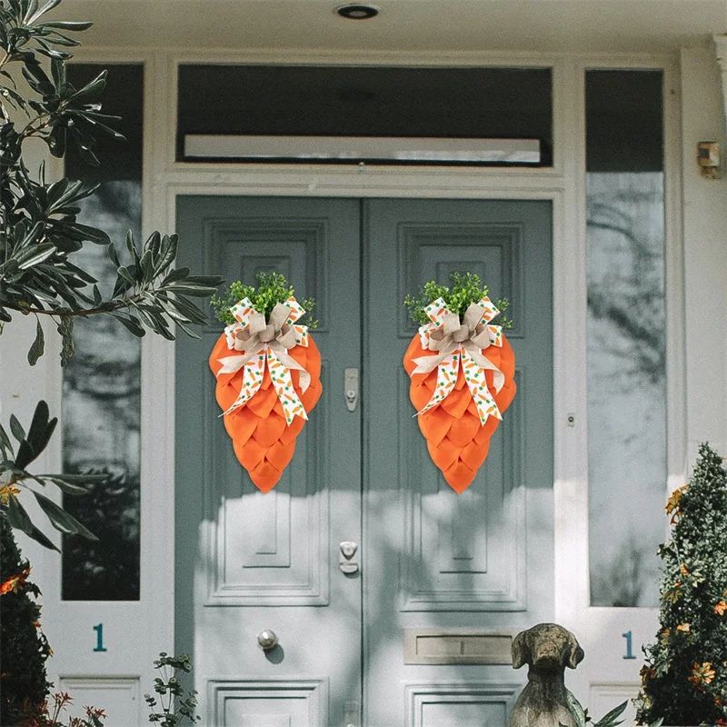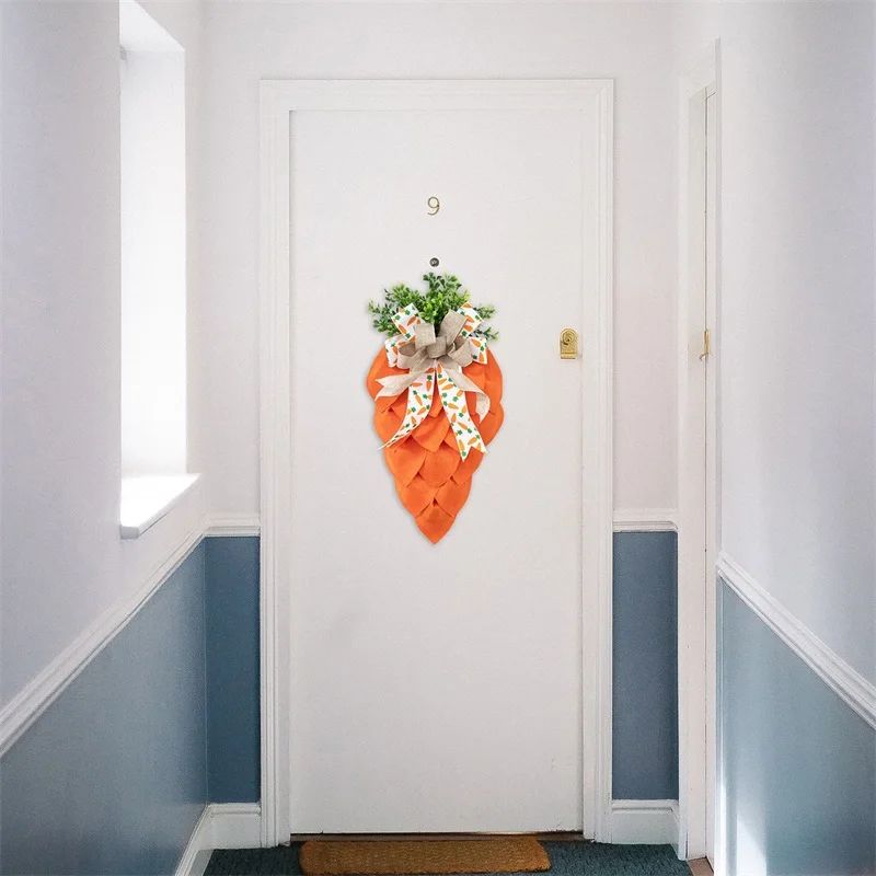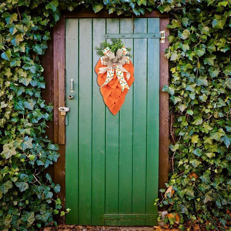 Easter Carrot Wreath Rustic Bow Cloth Wreath Garland With Green Leaves For Front Door Decoration