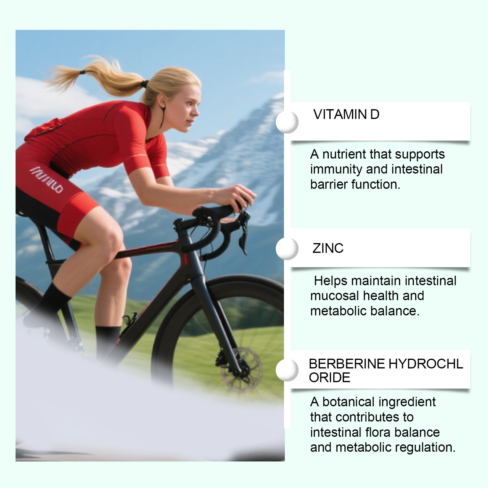 Ingredients: vitamin D, magnesium, zinc, berberine hydrochloride, resveratrol, quercetin, star anise seed, licorice root extract, chicory root inulin.