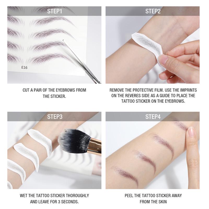 These brows are water-based brow stickers - simply dip water & stick to wear instantly to create 4D & hair-like brow strands with desirable brow shape. No professional makeup skill is required! And once it sticks, it becomes waterproof, smudgeproof with long lasting result up to 7 days!