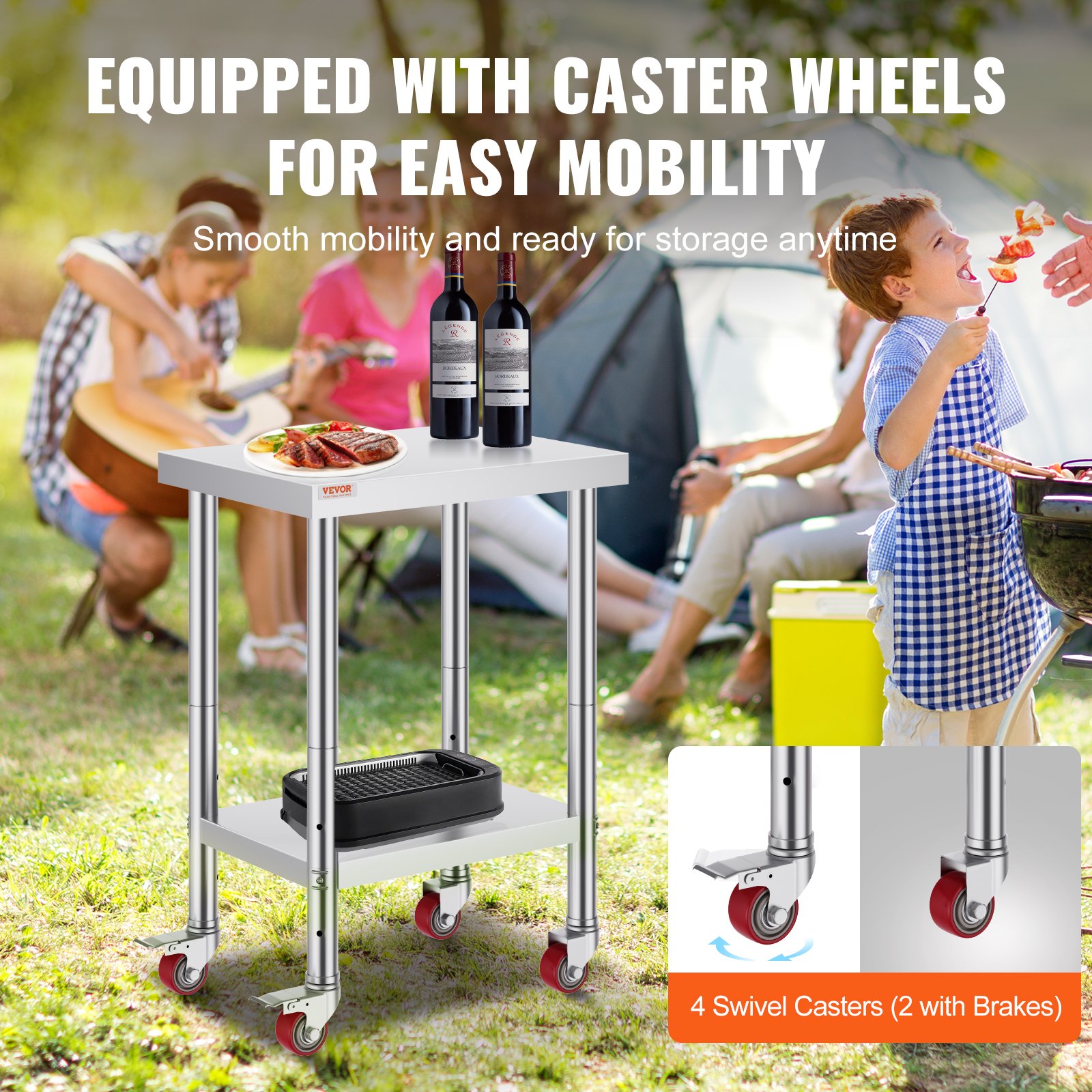 VEVOR Edelstahltisch Arbeitstisch 609,6 x 457,2 x 863,6 mm Edelstahl Catering Arbeitstisch 100kg für Belastbarkeit Lebensmittel Zubereitungstisch Gewerblicher Arbeitstisch